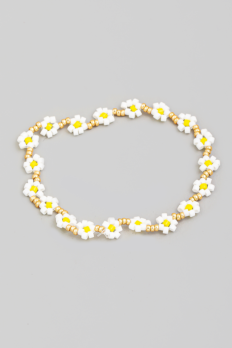 - This stretch bracelet brings a unique dainty seed beaded flower style. Unveil a new dimension of sophistication as this accessory effortlessly enhances the elegance of your ensemble.