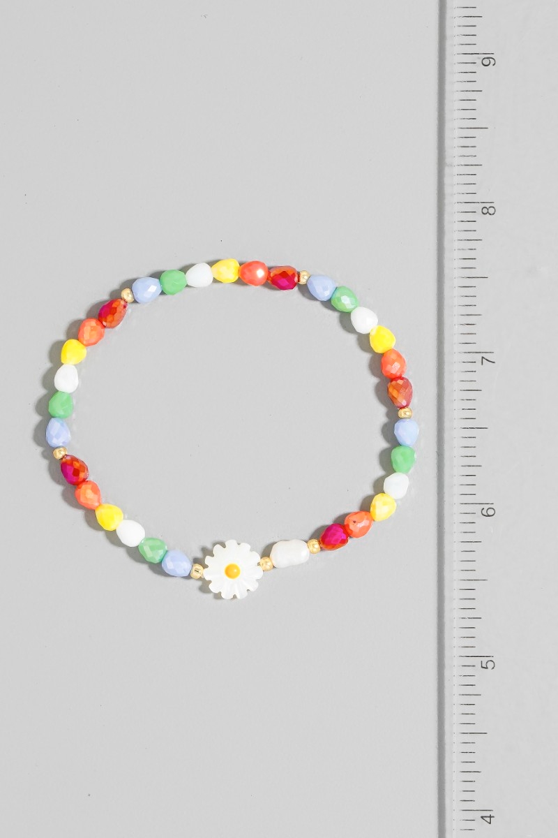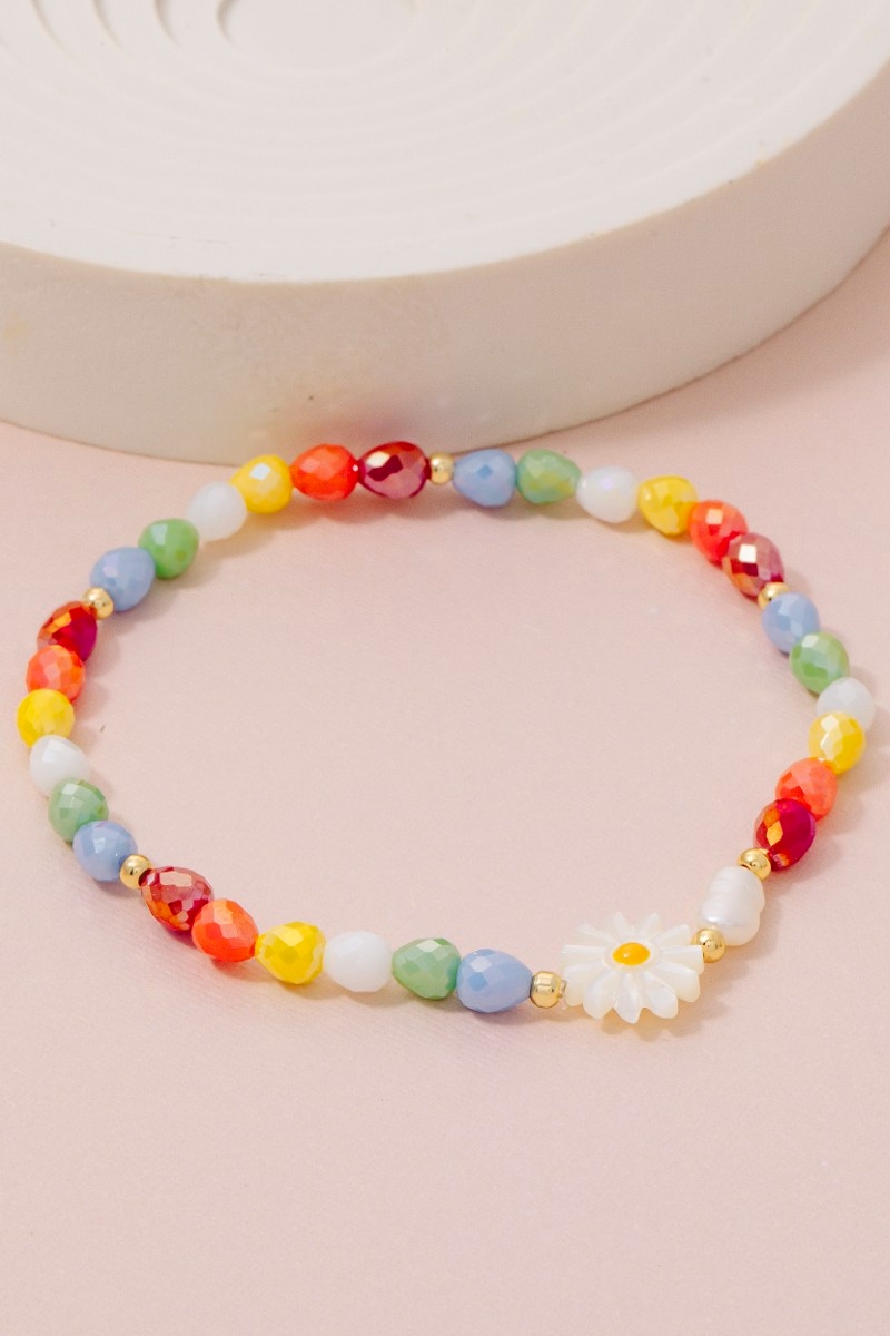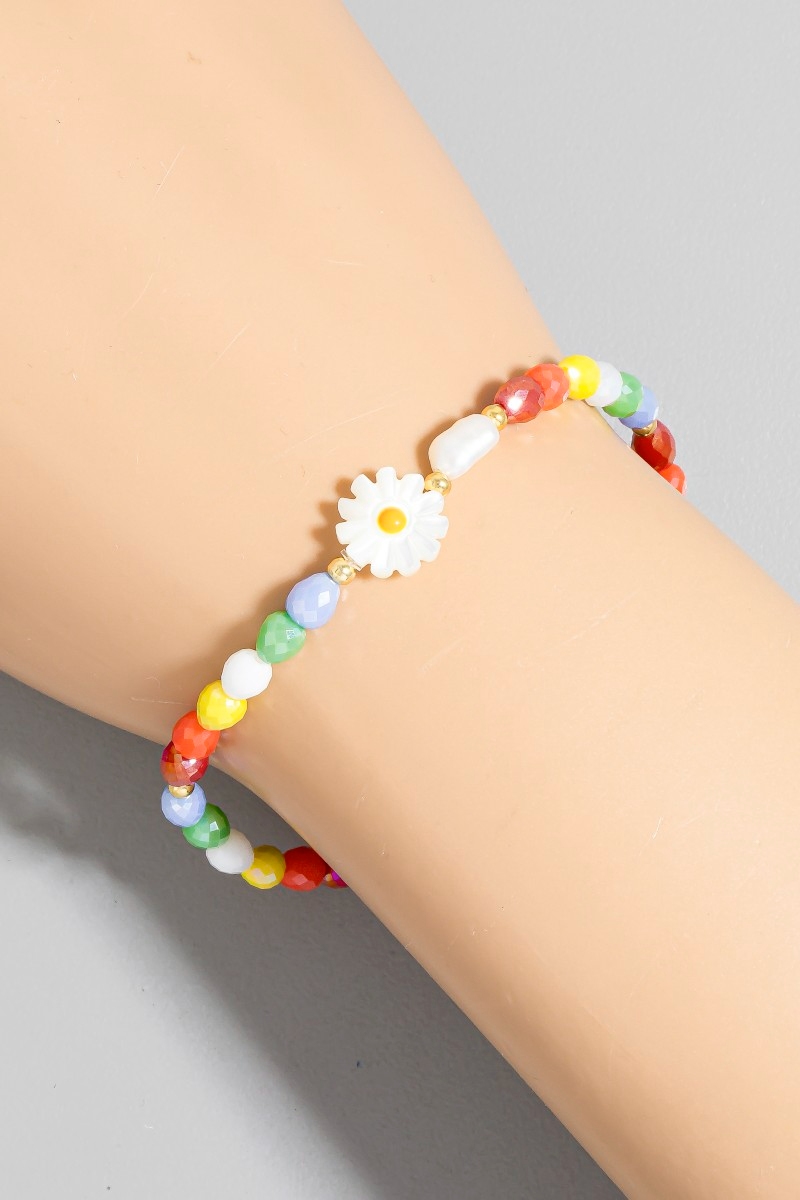 - This bracelet showcases a unique flower pearl glass beaded style. Indulge in the artistry of accessorizing with this unique piece.