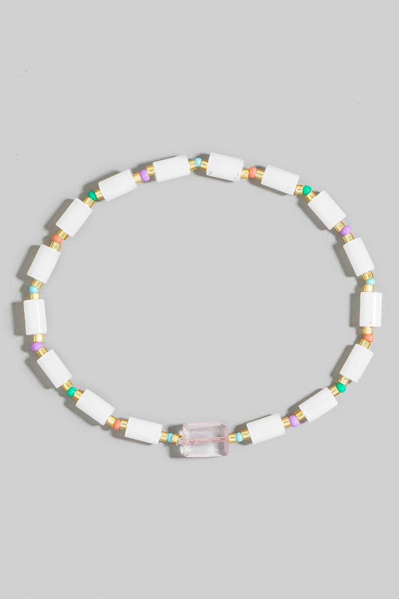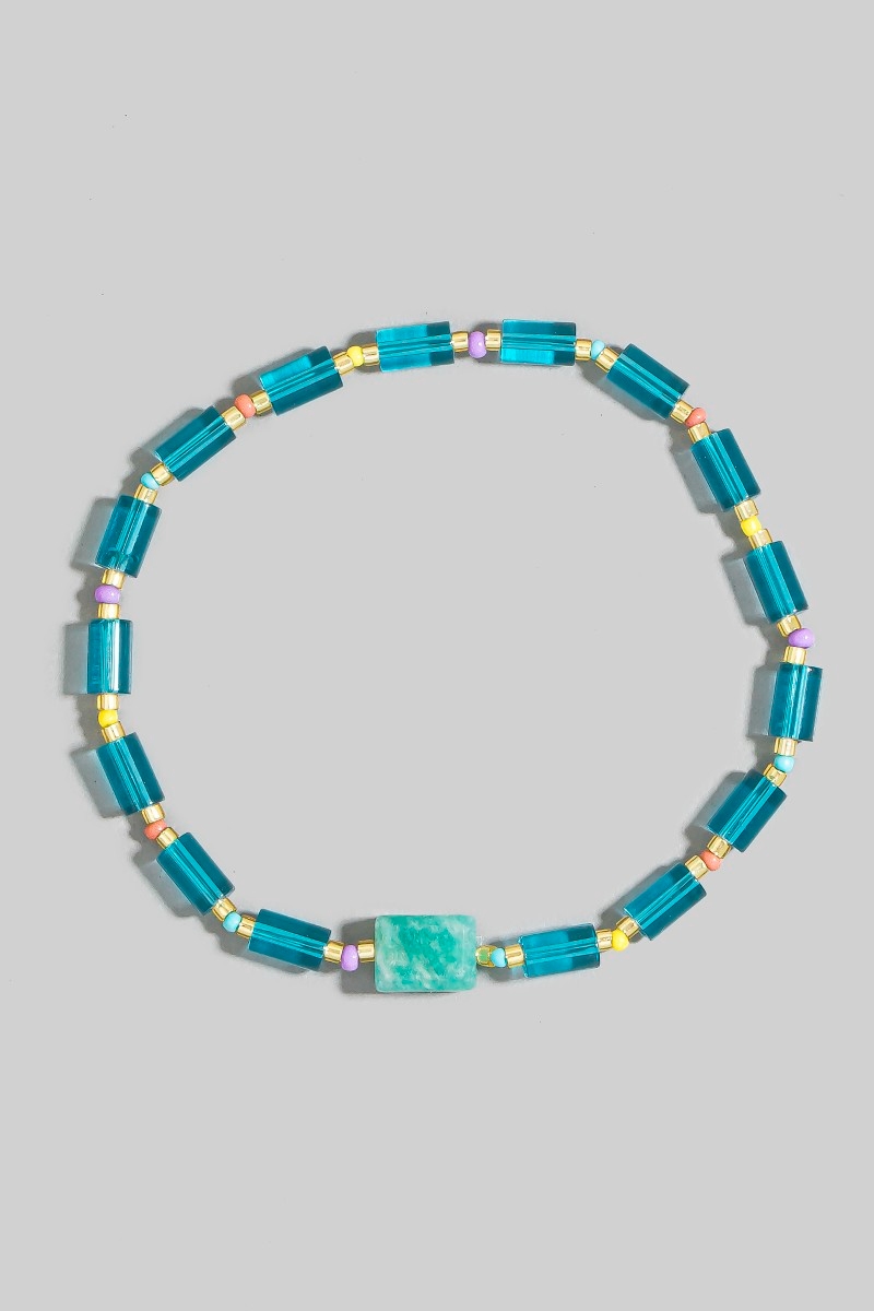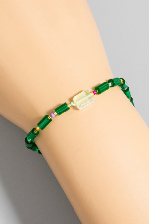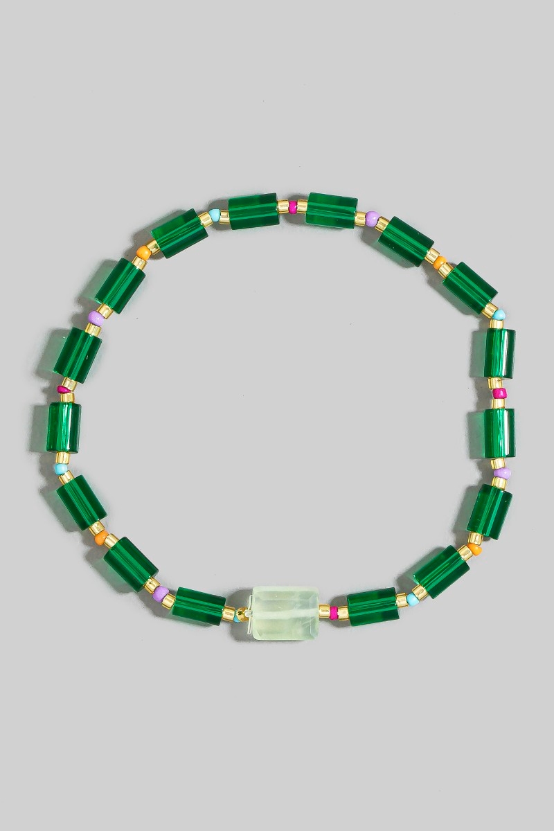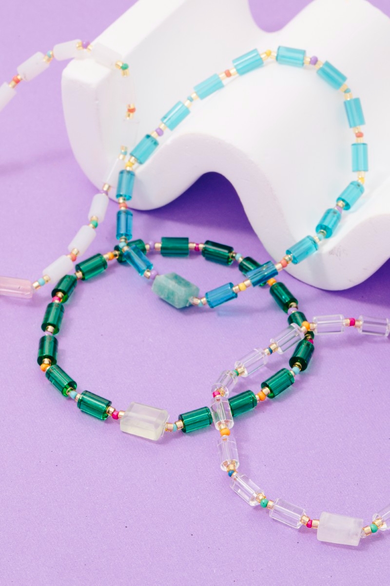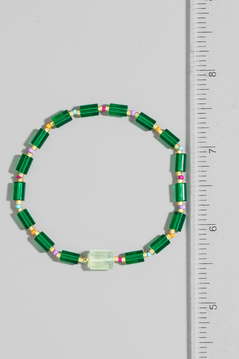 - This bracelet introduces a stunning glass tube bead stone charm style. Elevate your ensemble with this chic, timeless bracelet.