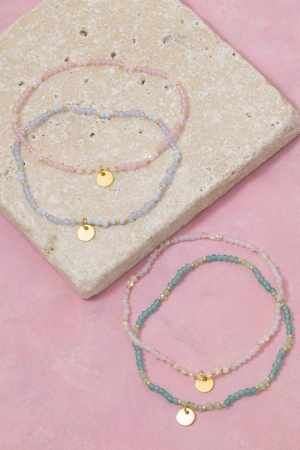 - This bracelet brings a luxurious mini coin charm mixed beaded style. Elevate your ensemble with this bracelet that effortlessly captures the essence of refined fashion.