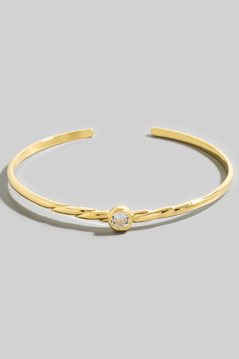 - This cuff bracelet brings a stunning minimalist gold dipped cubic zirconia stud style. Embark on a journey of sartorial refinement as this cuff bracelet effortlessly complements your fashion sense.