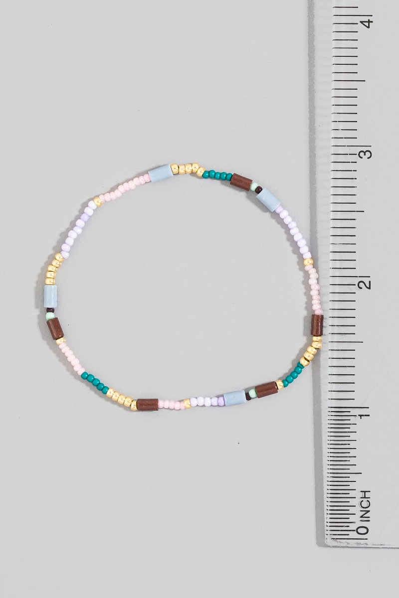 • This bracelet features a fashionable mixed colorful seed and tube beaded elastic style. Immerse yourself in the world of understated glamour as this bracelet effortlessly exudes timeless appeal.