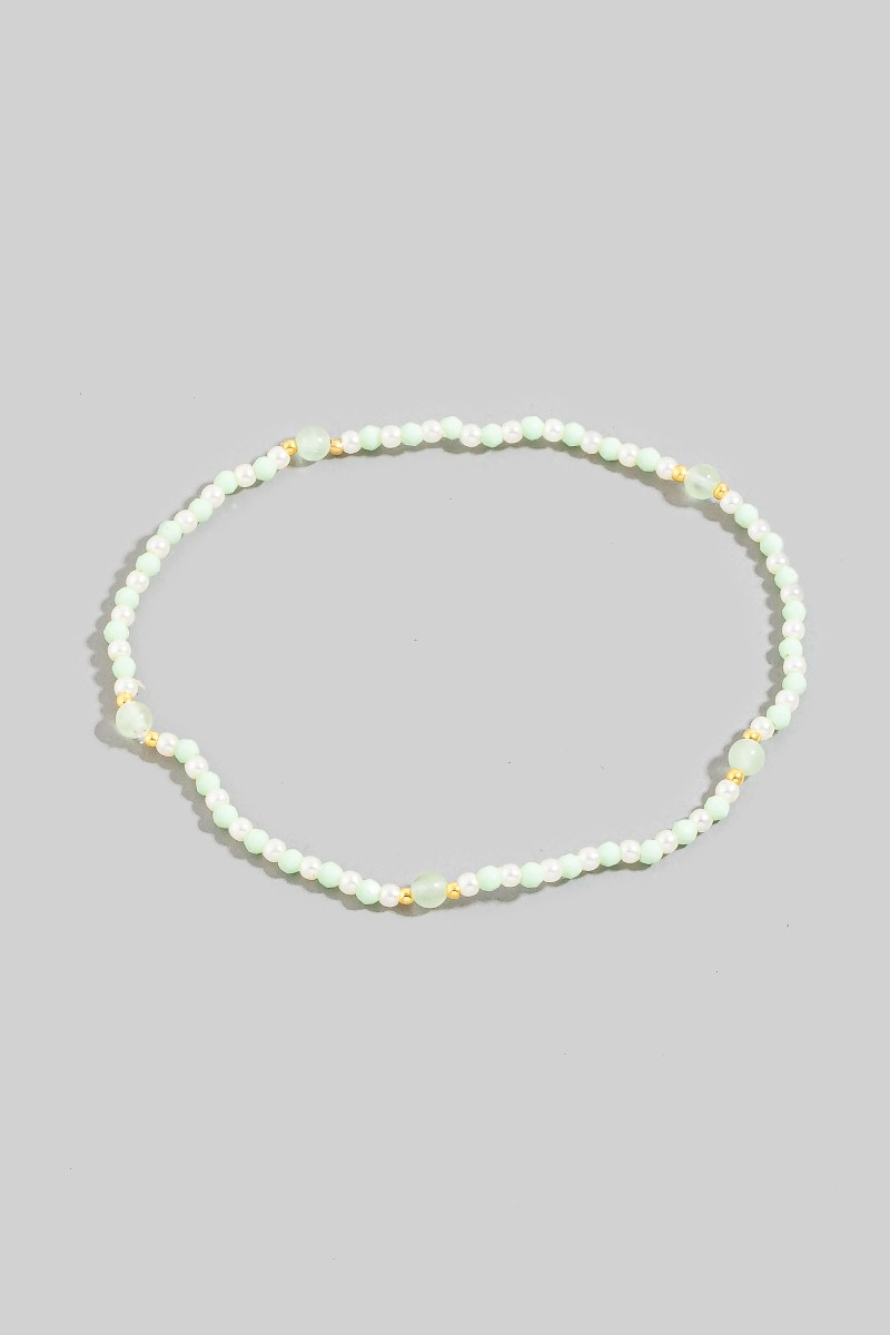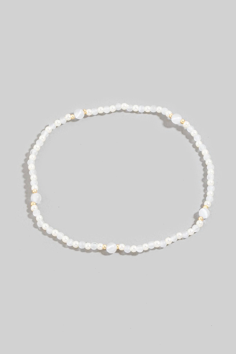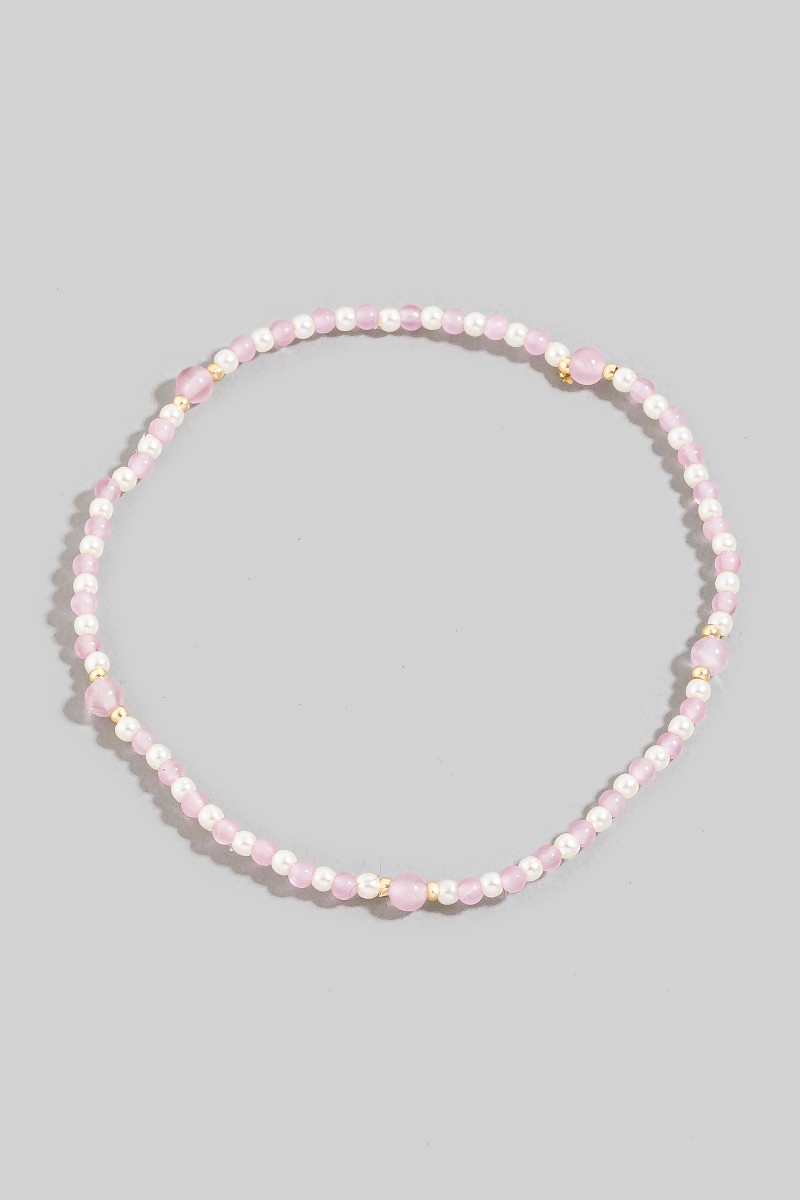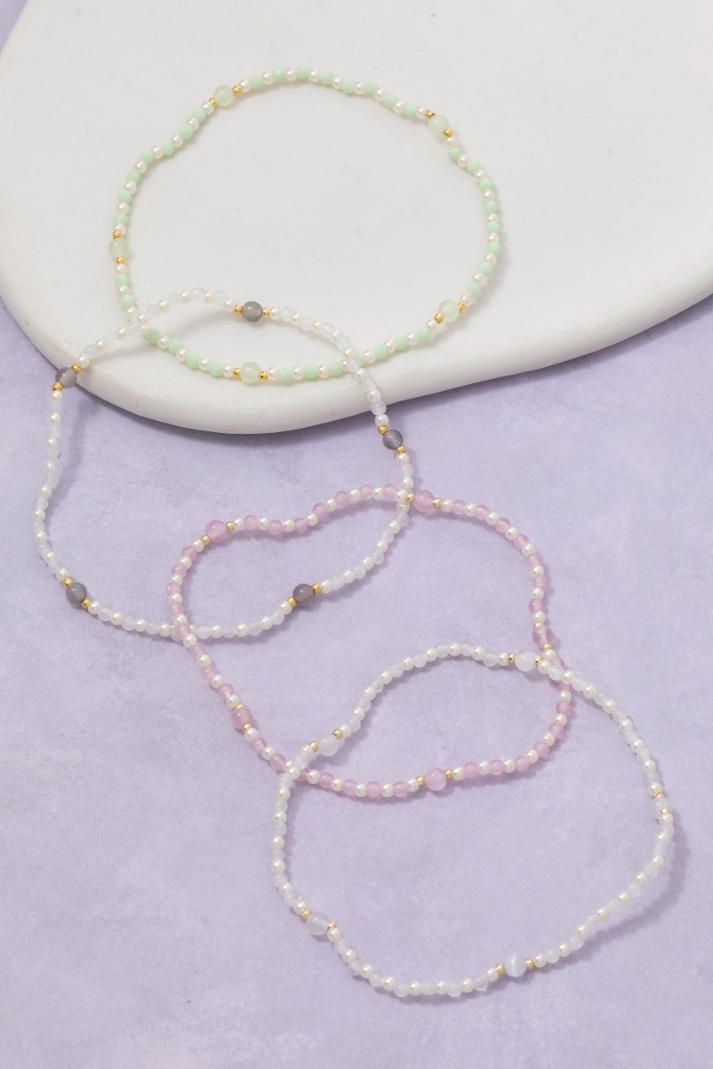 - This bracelet features a fashionable mixed mini pearl beaded elastic style. Discover the perfect balance of subtlety and flair as this bracelet effortlessly completes your look.