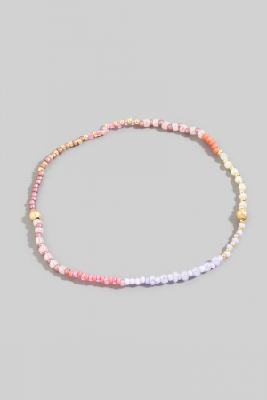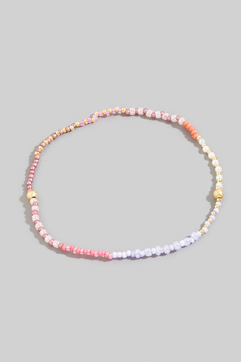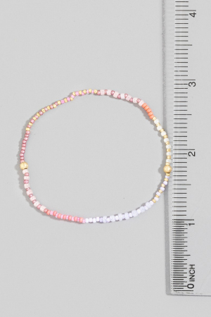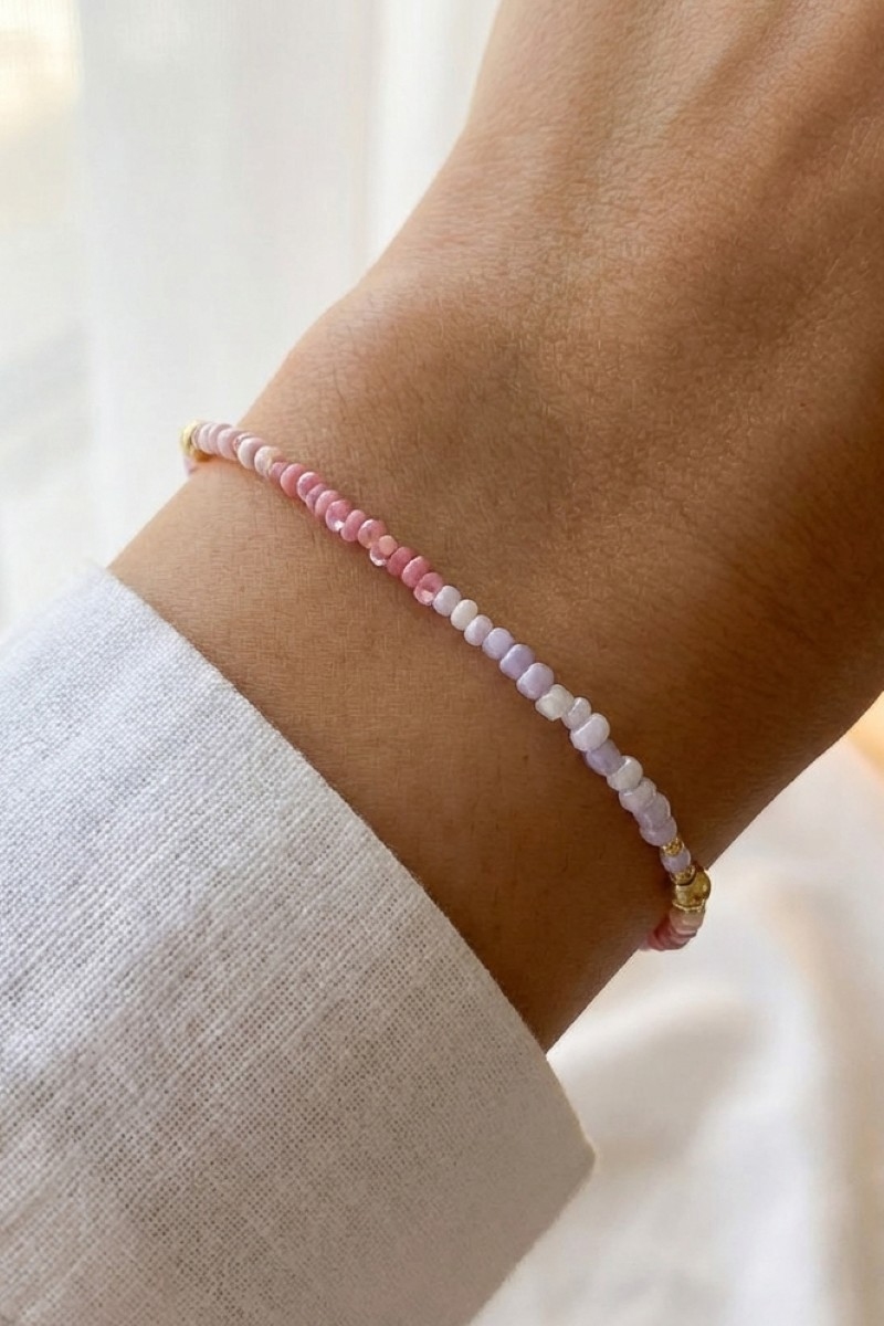 - This bracelet brings a stunning pink tones mini beaded style. Experience the joy of accessorizing with this piece that effortlessly combines versatility and charm.