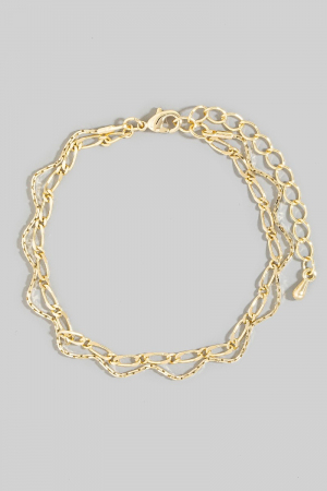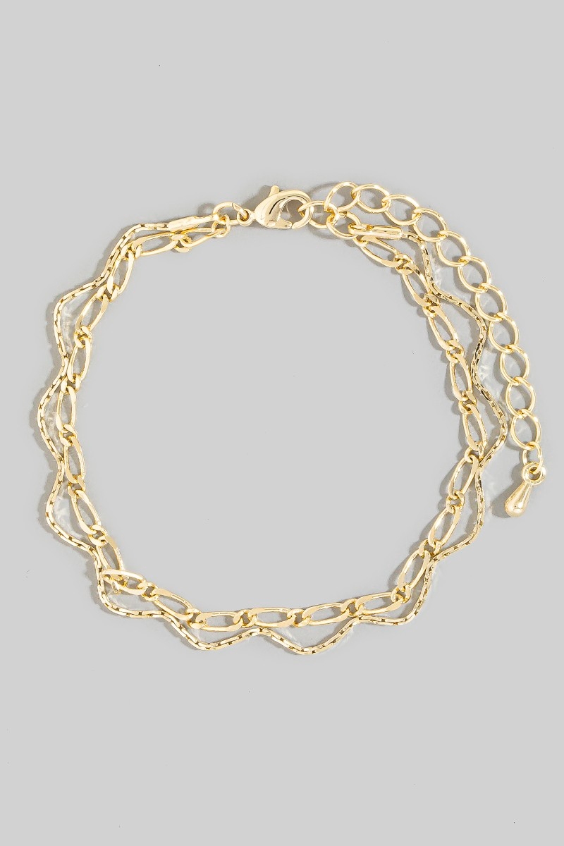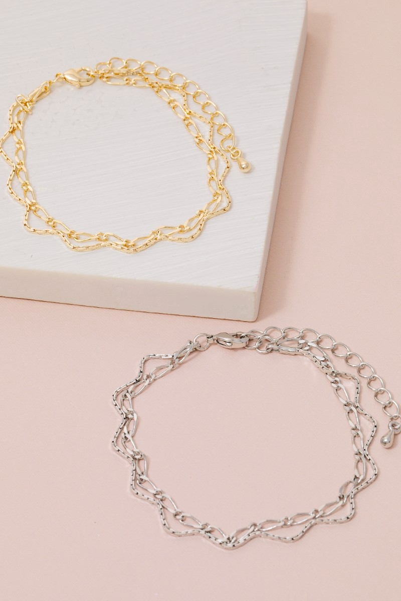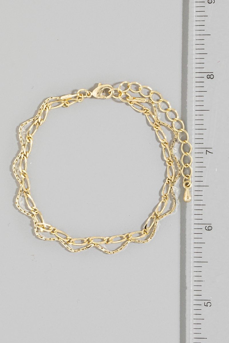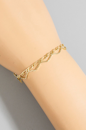 • This bracelet brings a luxurious two row wavy chain link style. Indulge in the artistry of accessorizing with this unique piece.