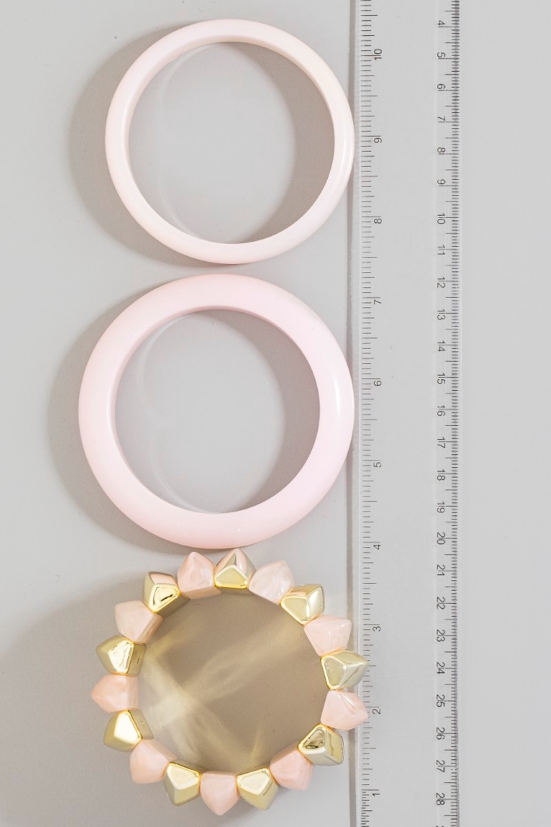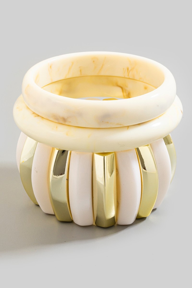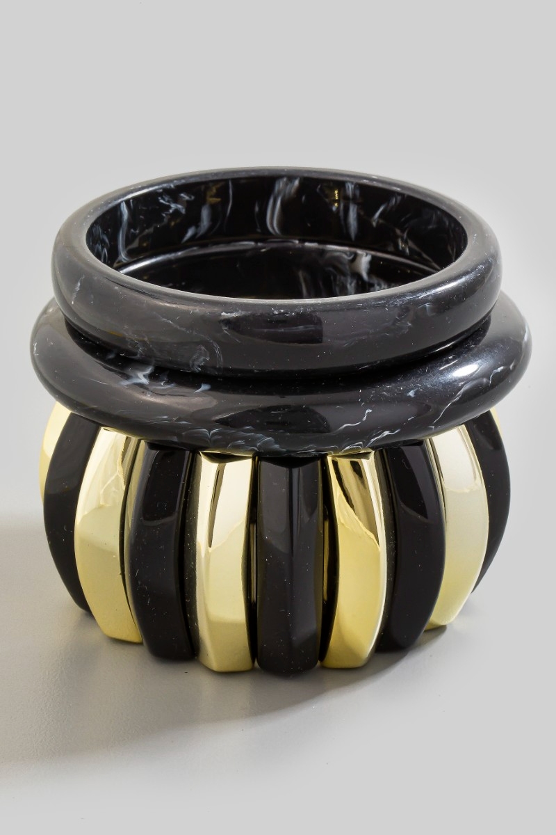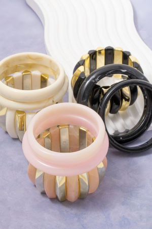- This bracelet brings a unique marble resin bangle and elastic set style. Unveil a new dimension of sophistication as this bracelet effortlessly enhances the elegance of your ensemble.