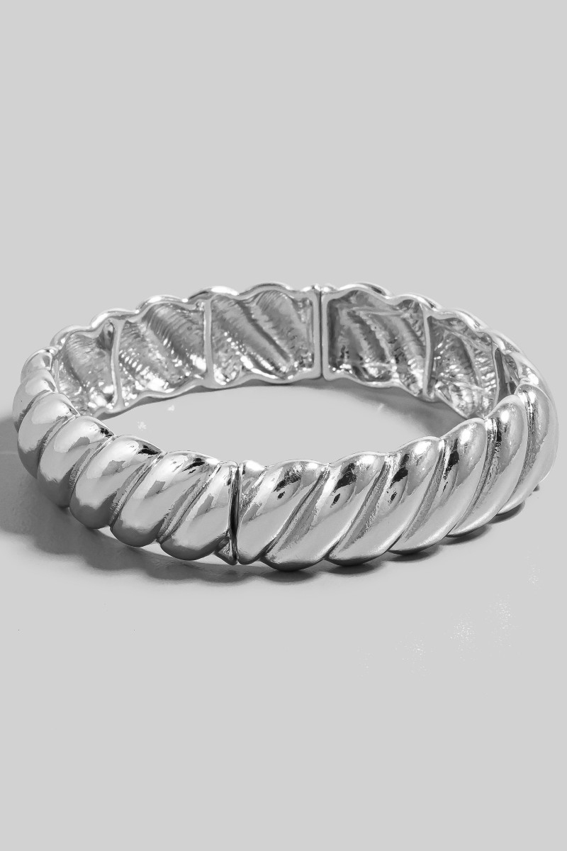 - This bangle bracelet brings a stunning metallic braided texture elastic bracelet style. Unveil modern elegance with this subtly intricate bangle bracelet.