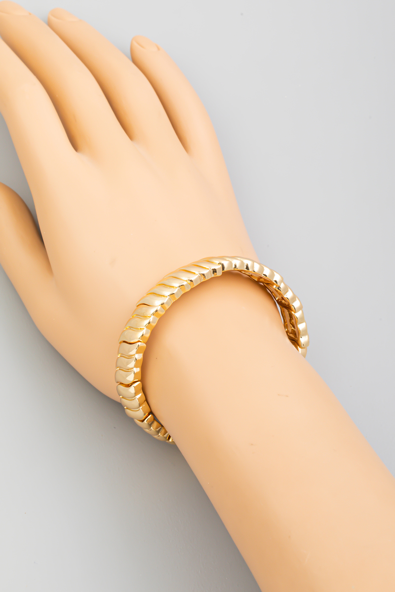 Two Tone Cz Wheat Chain Cuff Bracelet