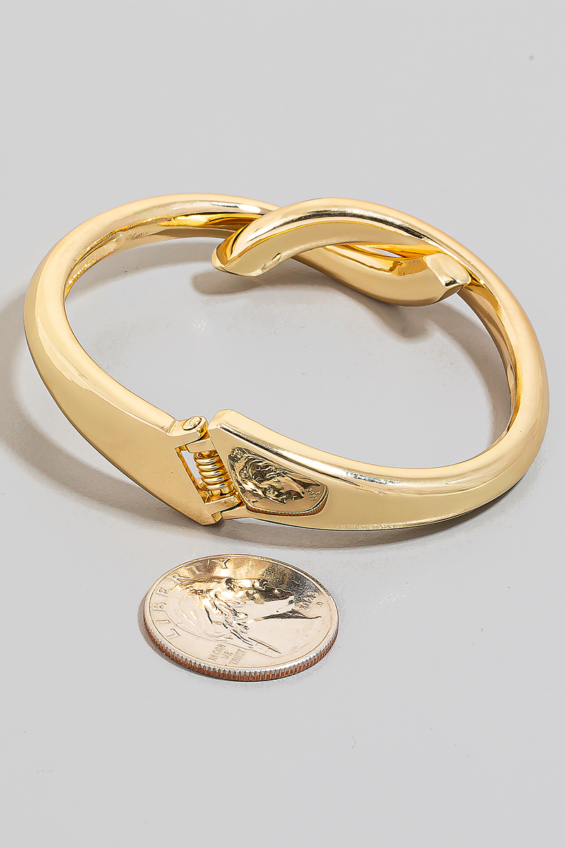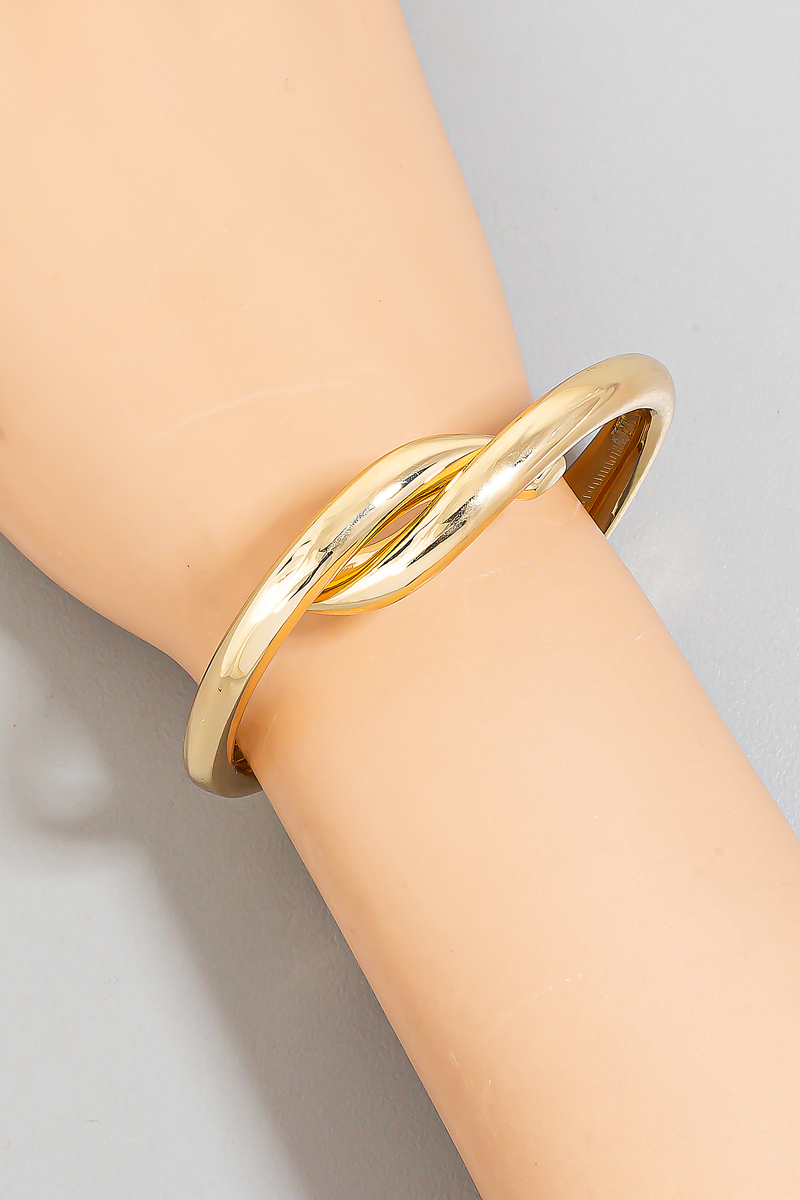 • This bangle bracelet displays a fashionable metallic twist clasp style. Discover the perfect balance of functionality and fashion.