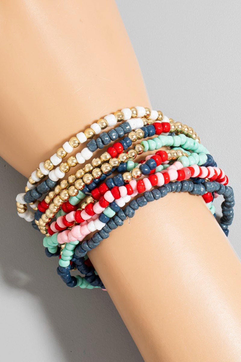 - This bracelet brings a luxurious mixed colored seed beaded set style. Explore a blend of classic charm and contemporary flair.