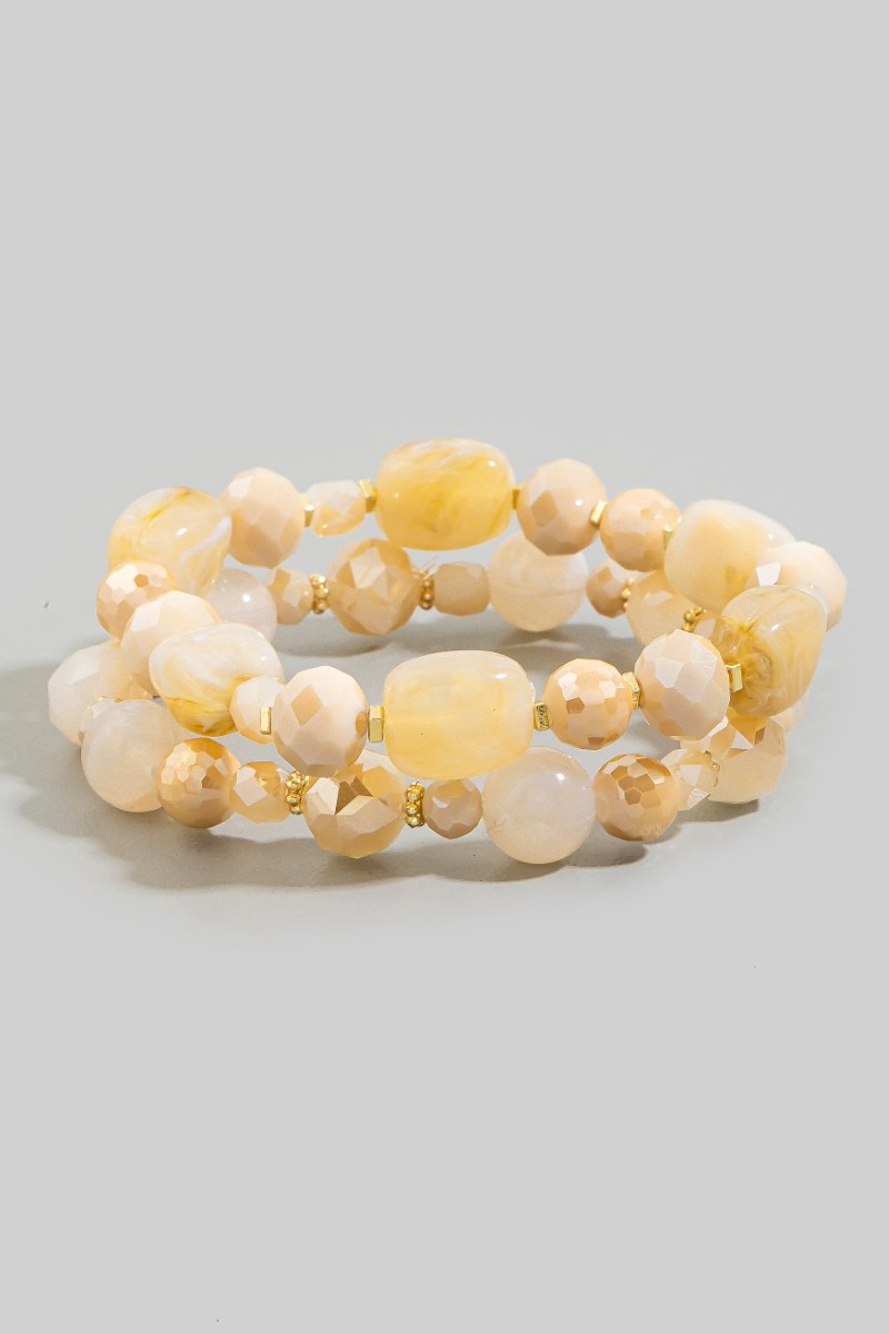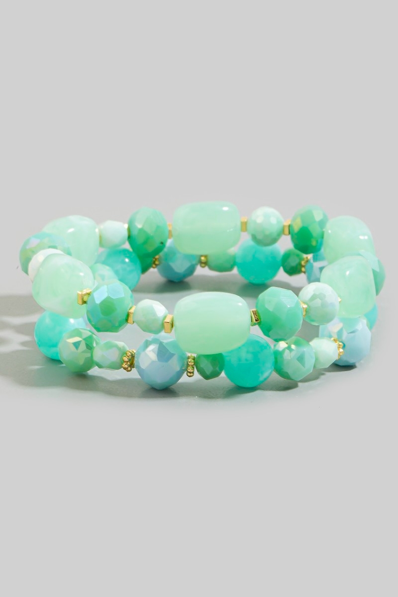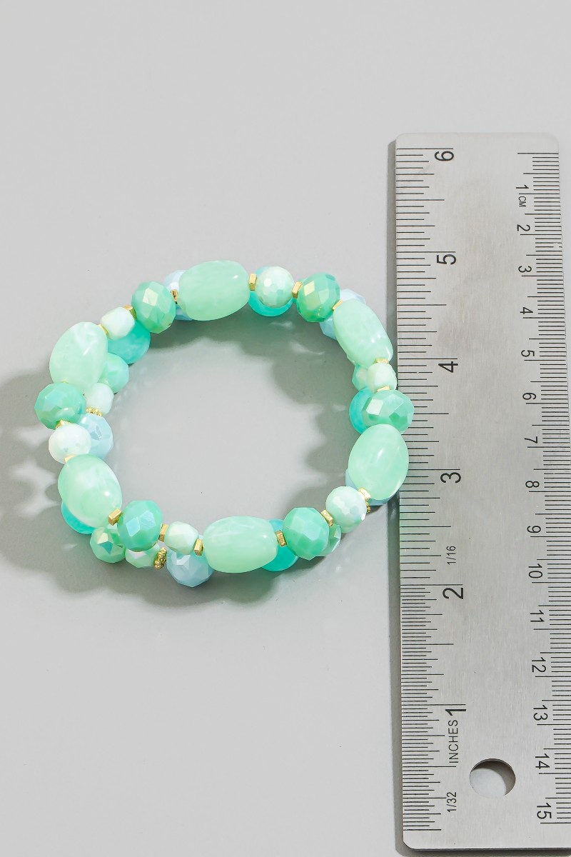 - This stretch bracelet displays a vibrant mixed faceted crystal bead set style. Immerse yourself in the world of understated glamour as this stretch bracelet effortlessly exudes timeless appeal.