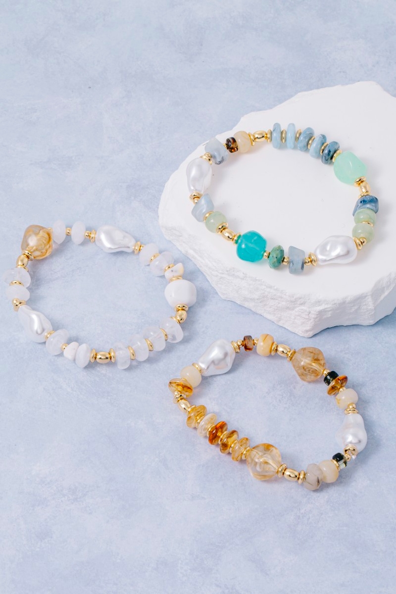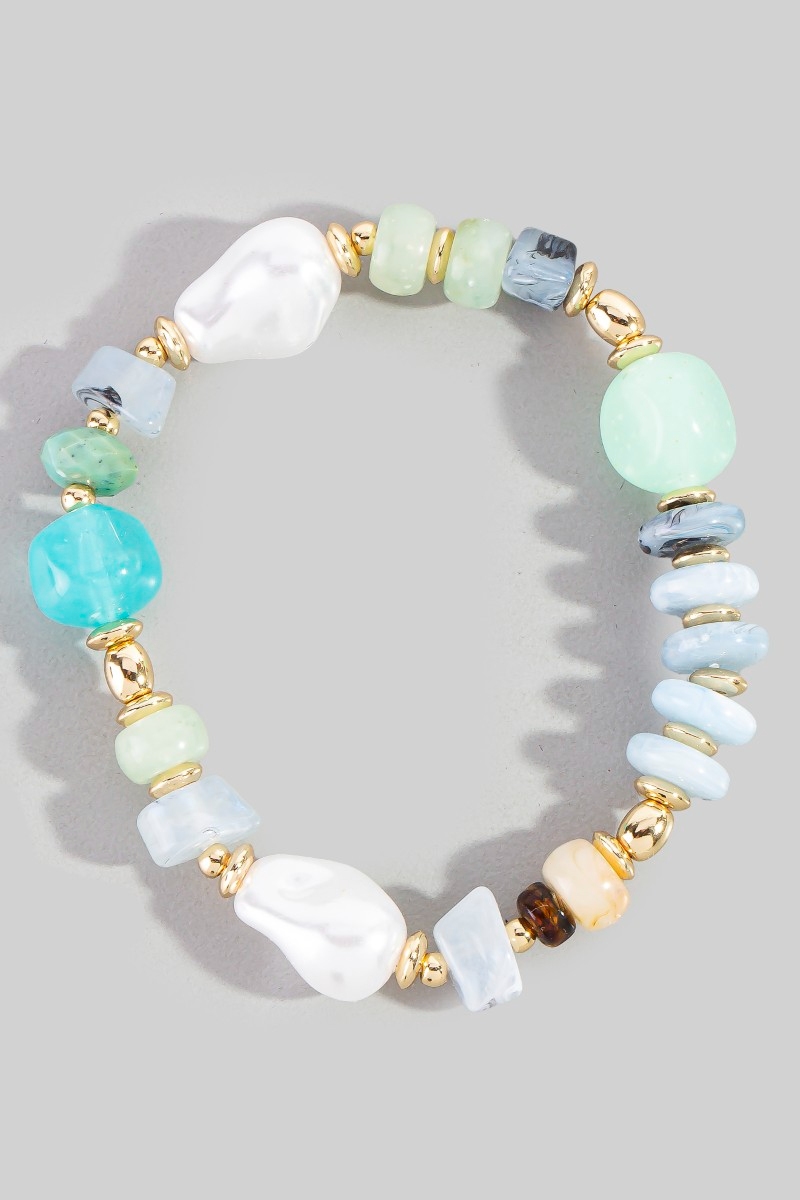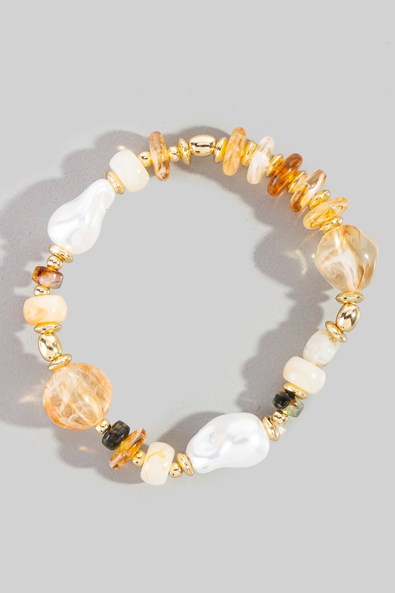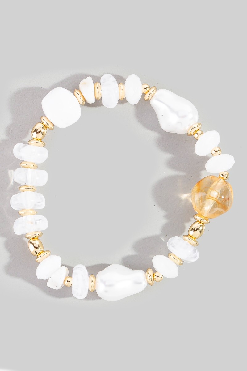 • This bracelet adds a modern mixed pearl and metallic beaded elastic style. Celebrate individuality with this bracelet that effortlessly expresses your unique sense of style.