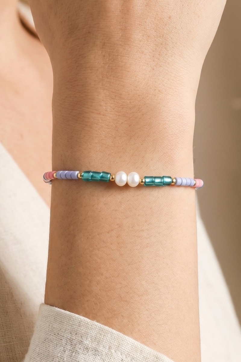 - This stretch bracelet displays a vibrant multicolor tube bead & pearl style. Immerse yourself in the world of understated glamour as this stretch bracelet effortlessly exudes timeless appeal.