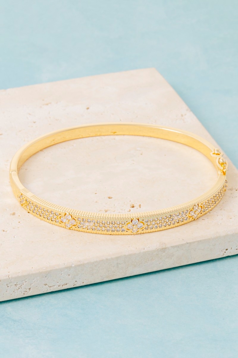 Cz Clover Bangle Bracelet