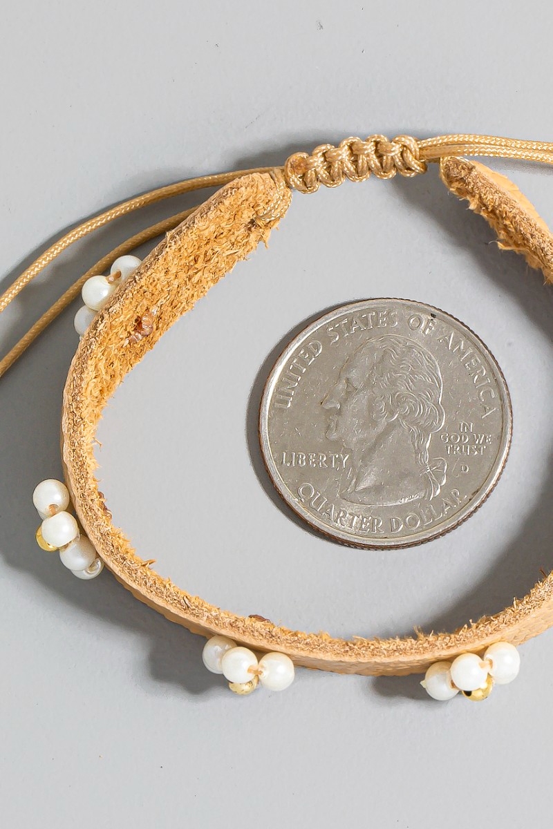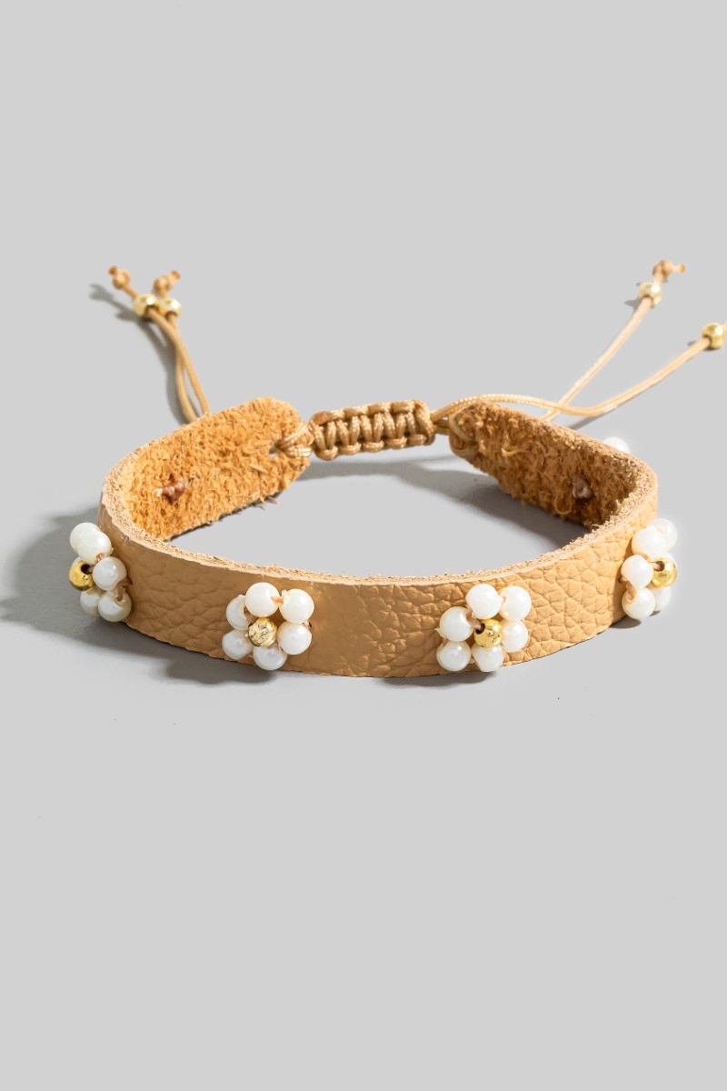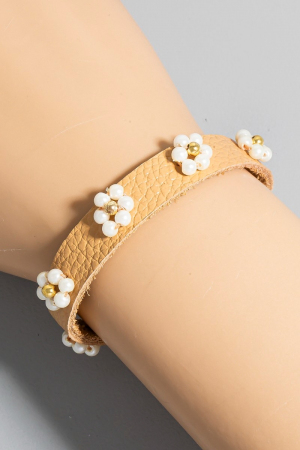 • This bracelet brings a luxurious pearl flower station faux leather cord style. Celebrate the art of accessorizing with this piece that effortlessly encapsulates modern trends.
