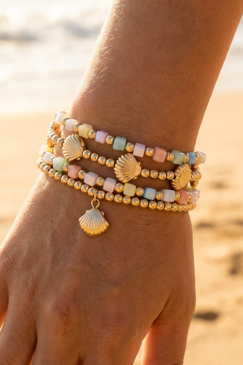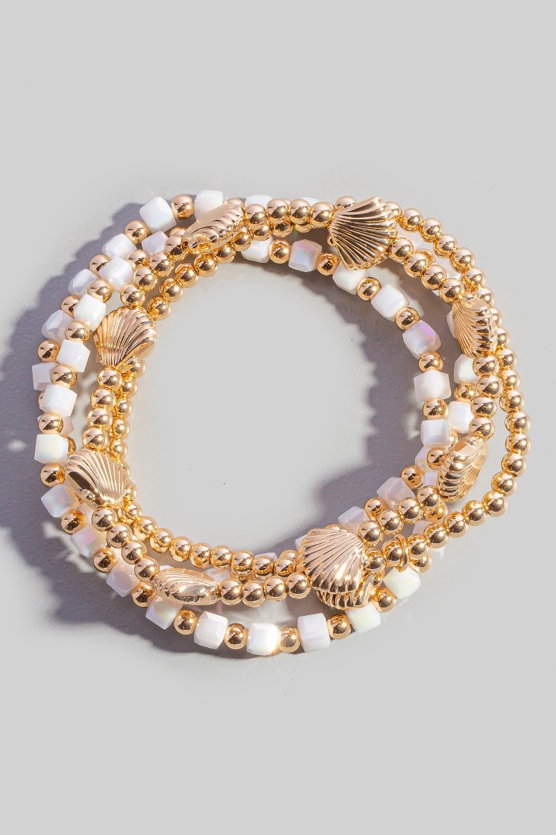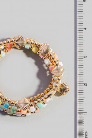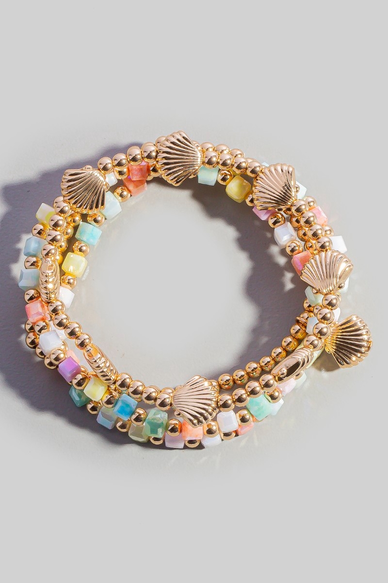 - This stretch bracelet displays a vibrant seashell charms bead set style. Step into a world of refined taste as this stretch bracelet effortlessly refines the details of your outfit.