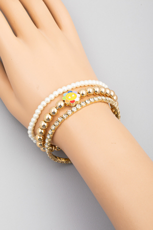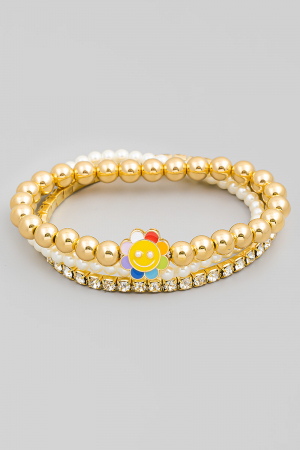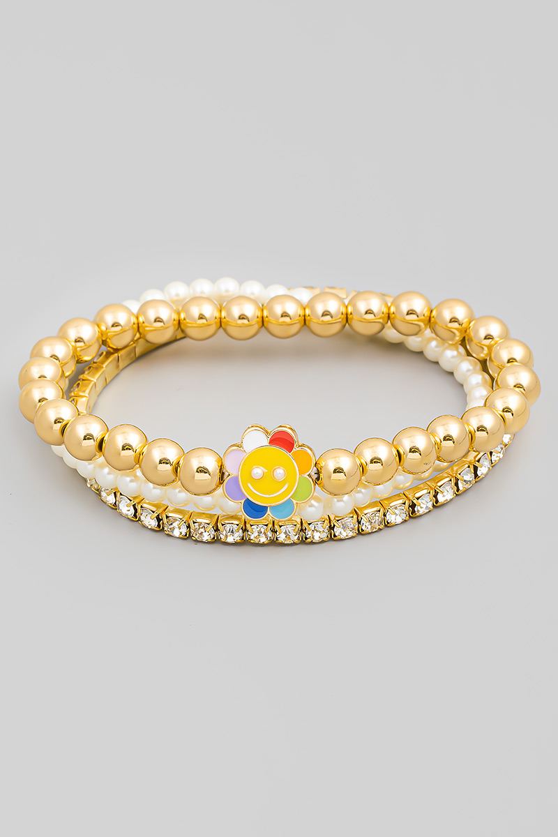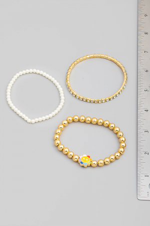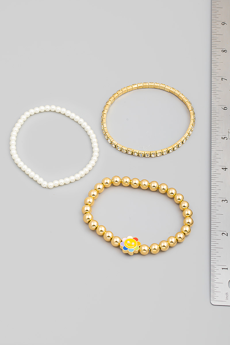 Crystal Gold Ball Beaded Stretch Bracelet Set
