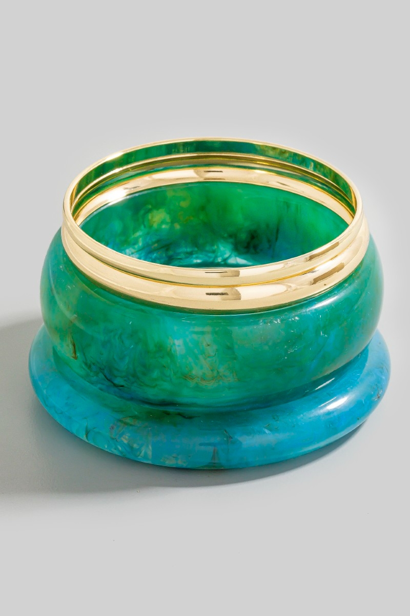 - This bangle bracelet introduces a stunning 4 piece marbel resin and metallic set style. Celebrate the art of accessorizing with this piece that effortlessly encapsulates modern trends.