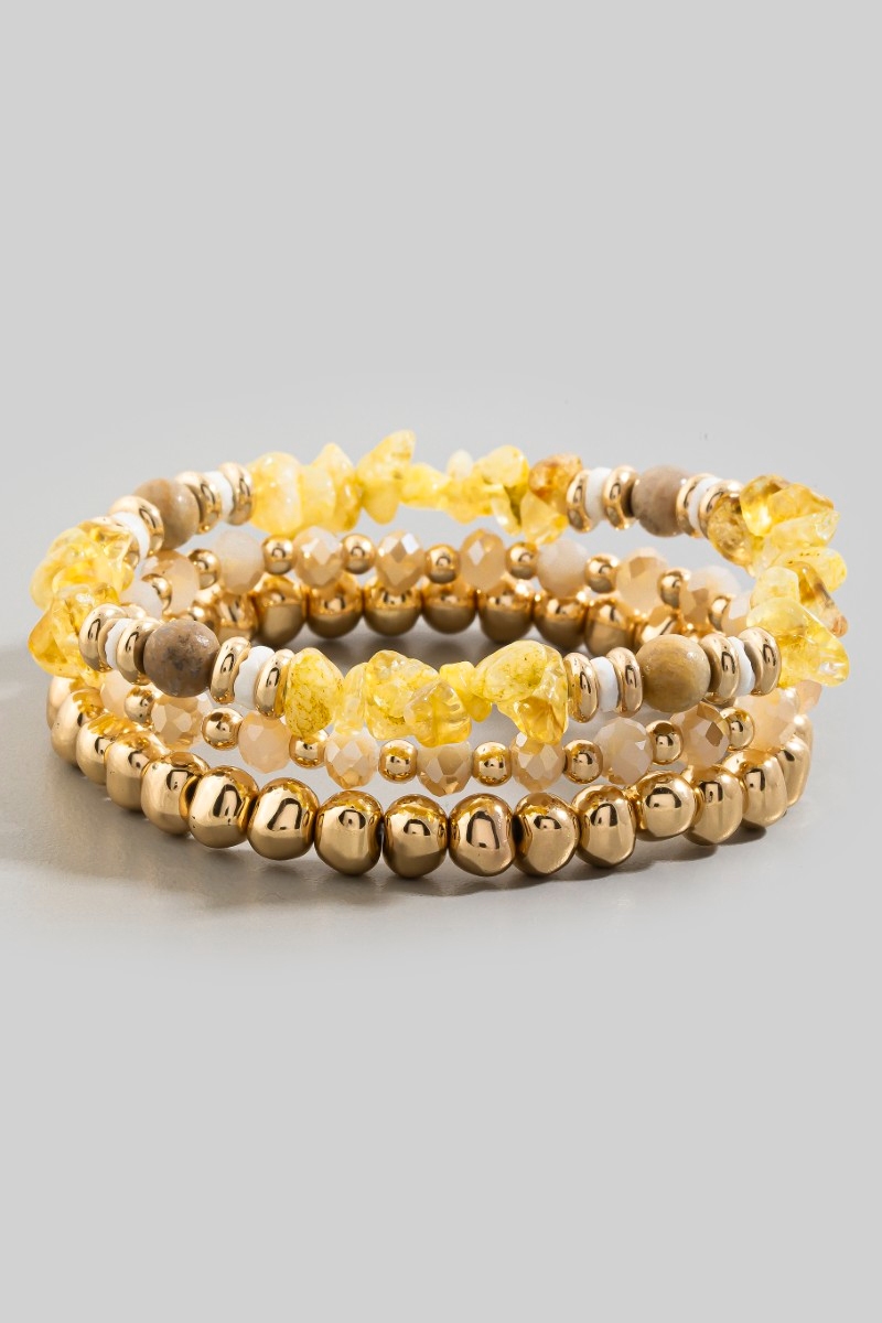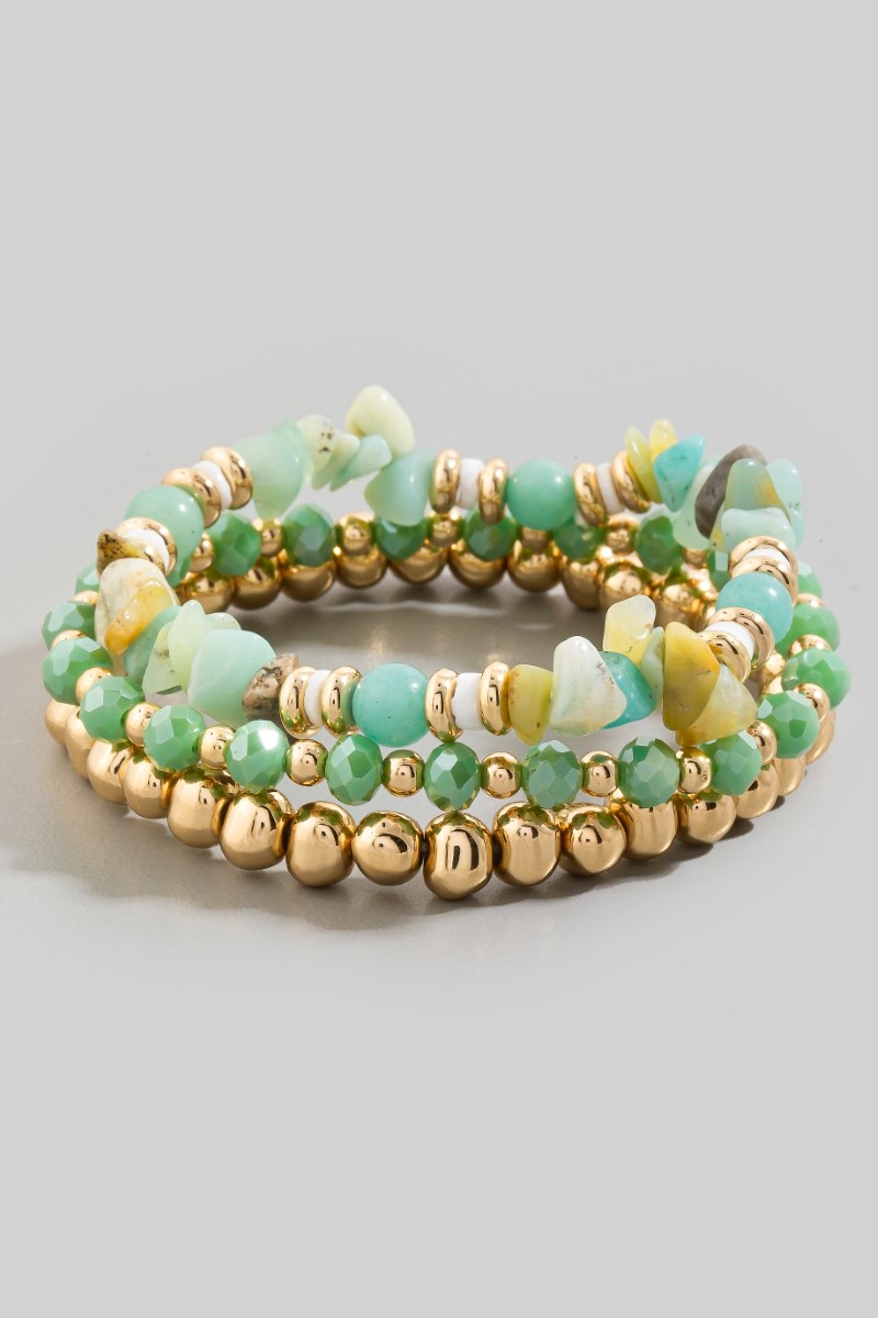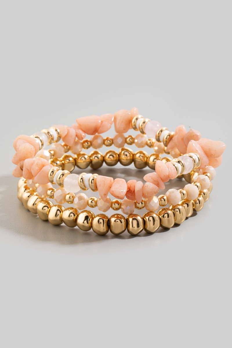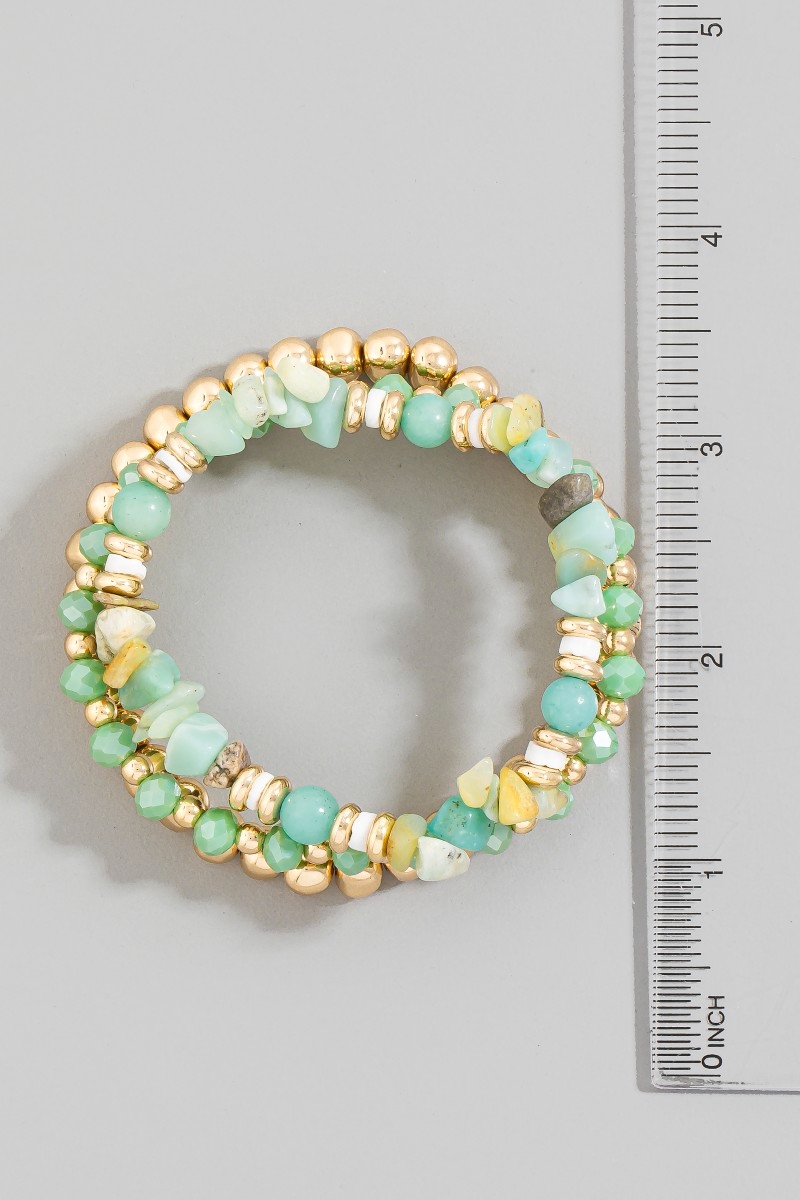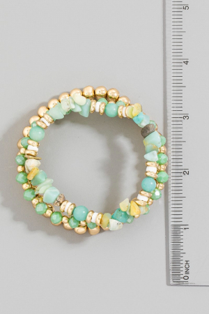 - This bracelet features a fashionable chip stones and metallic beaded set style. Step into a world of refined taste as this bracelet effortlessly refines the details of your outfit.