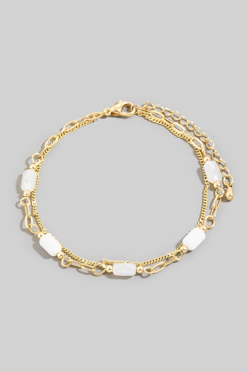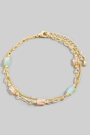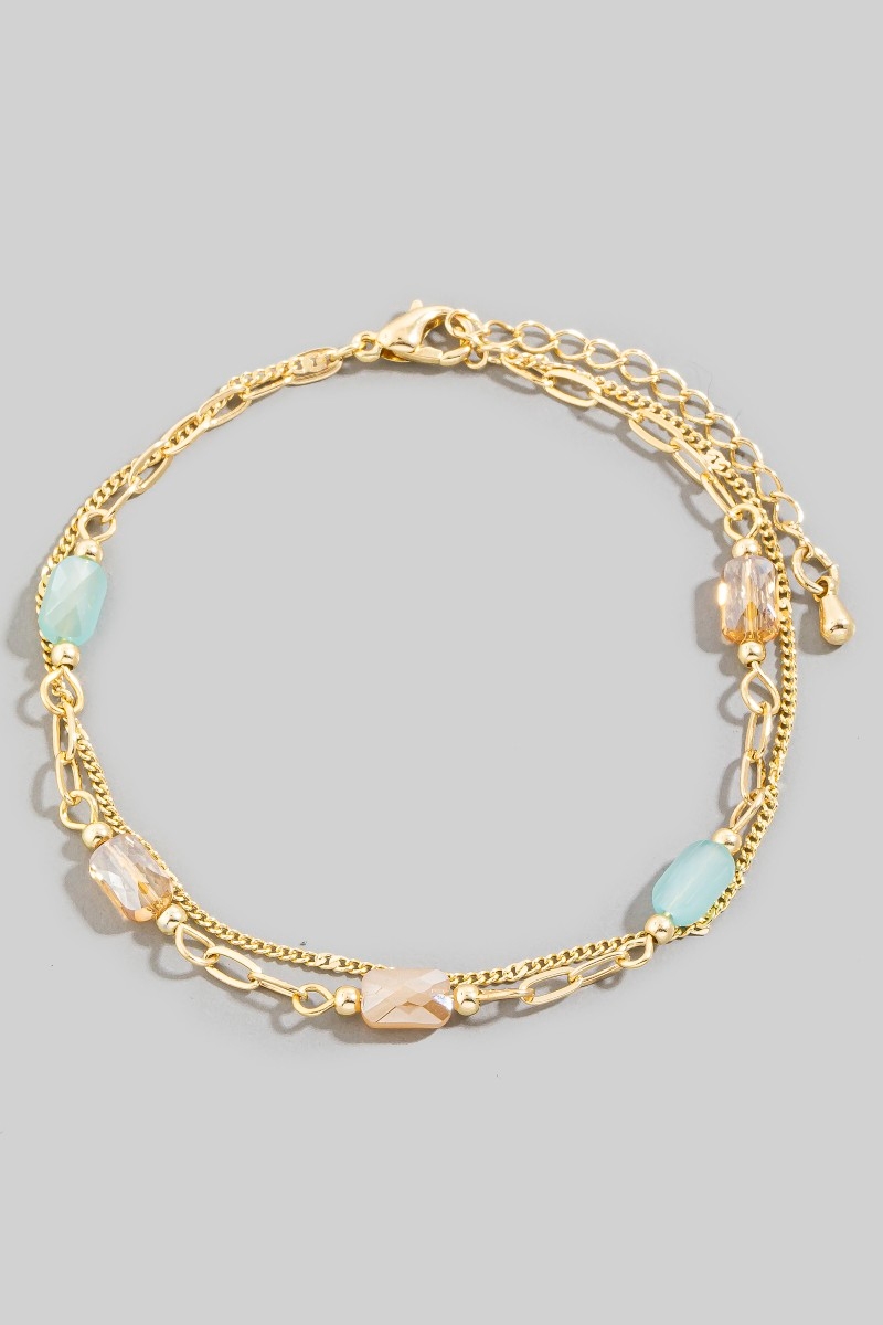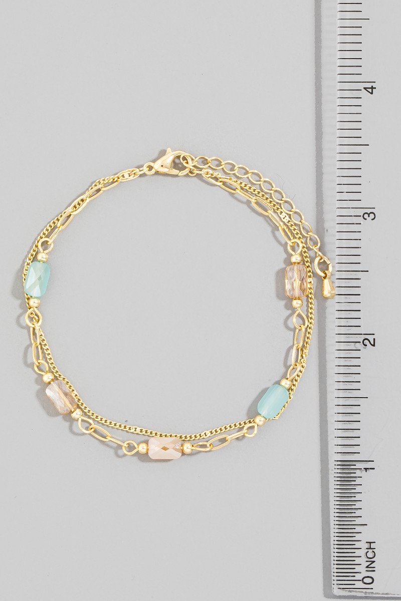- This bracelet brings a luxurious faceted rectangle gems mixed chains style. Experience refined sophistication with this understated yet stylish piece.