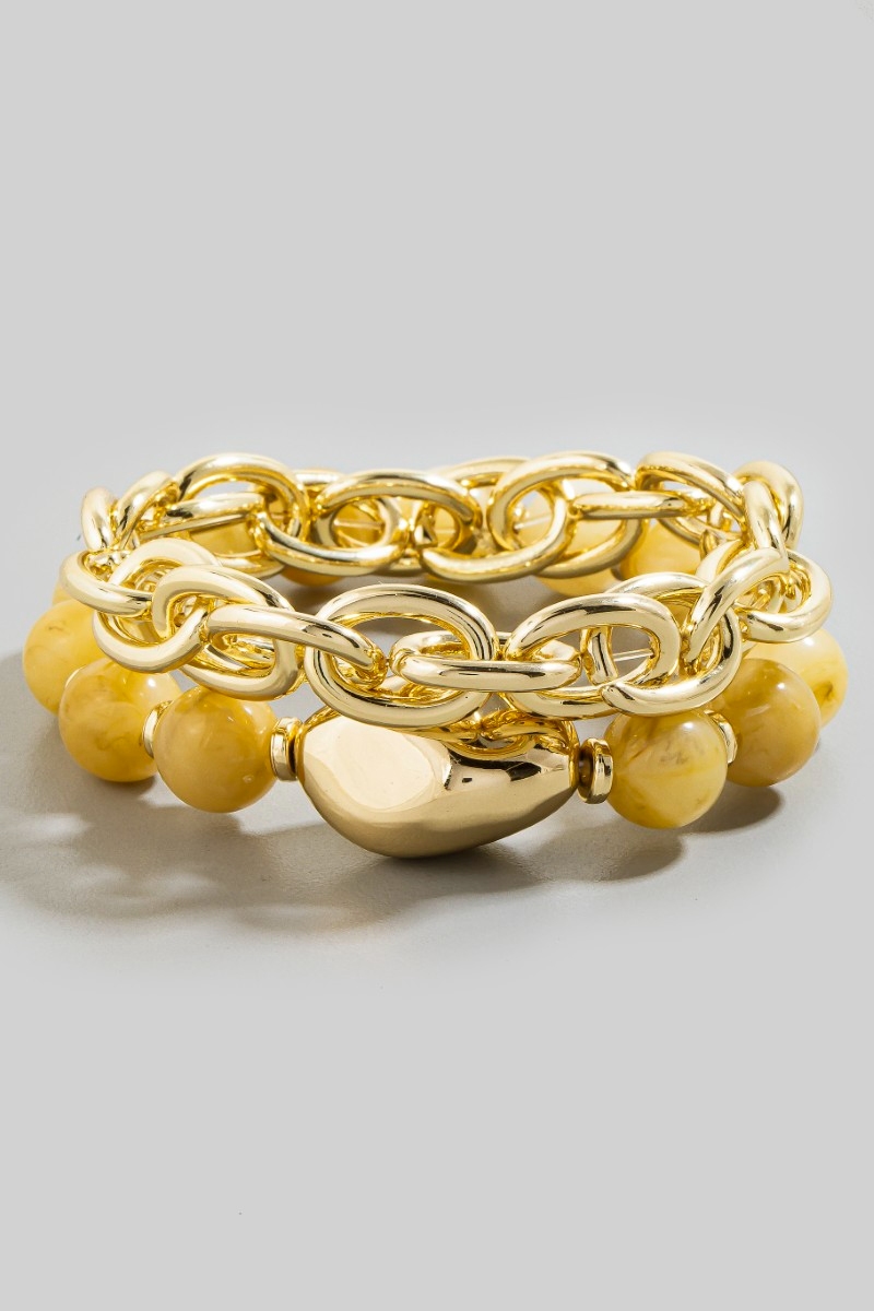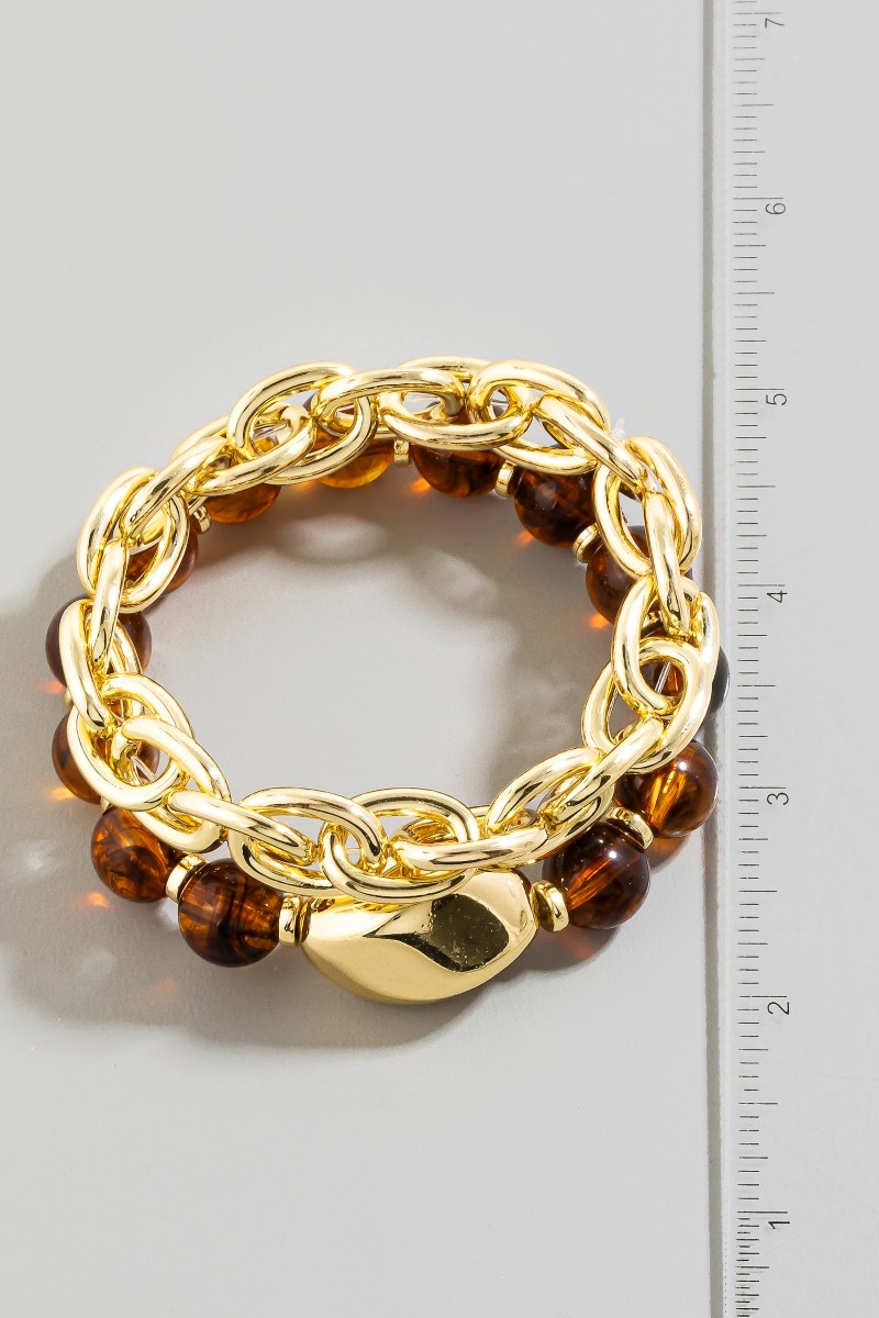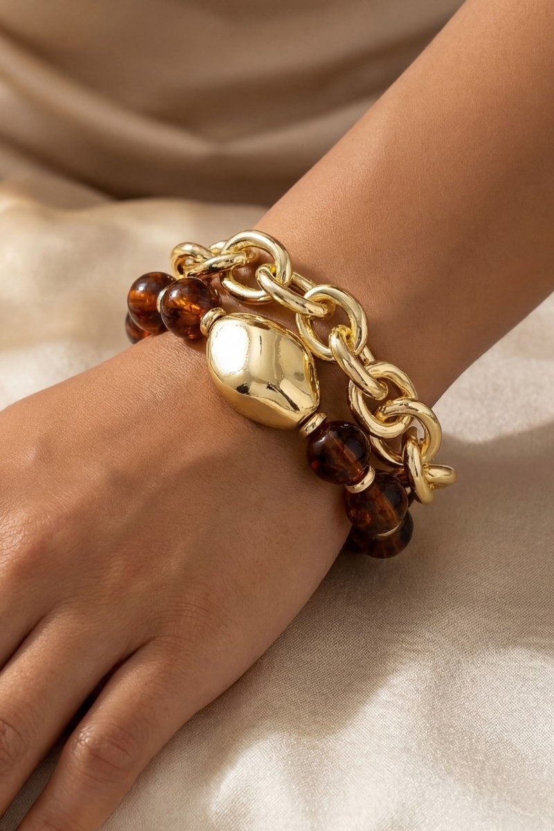 • This bracelet introduces a unique marble resin beads and chain layered style. Discover the perfect balance of functionality and fashion.