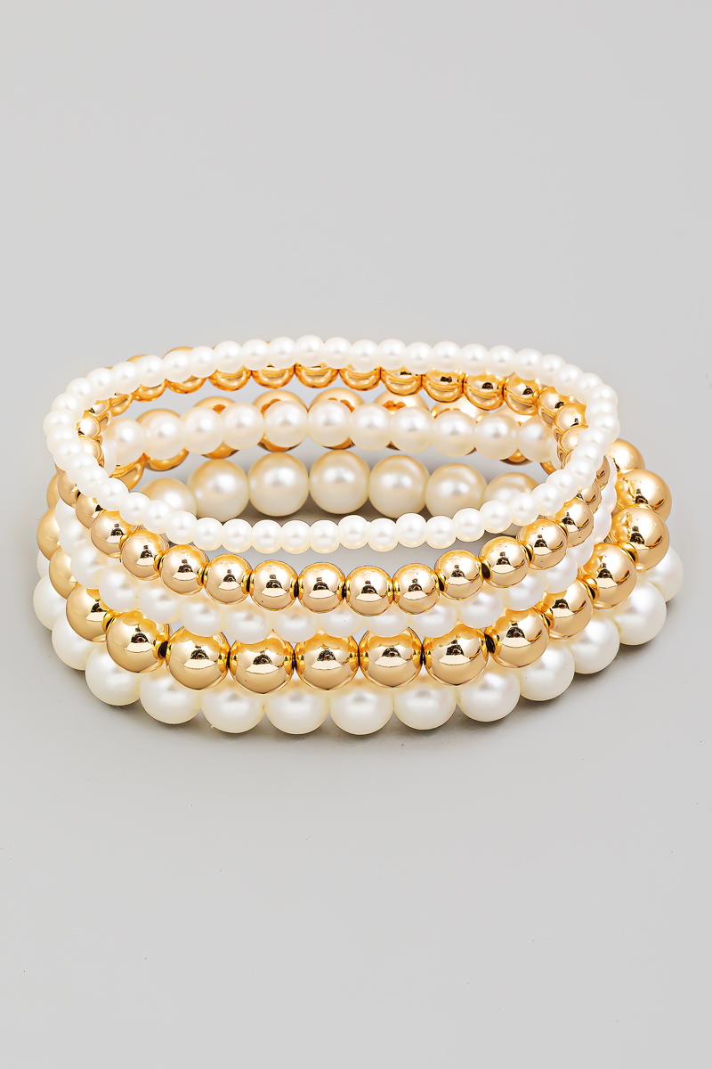 Multi Pearl Ball Beaded Bracelet Set