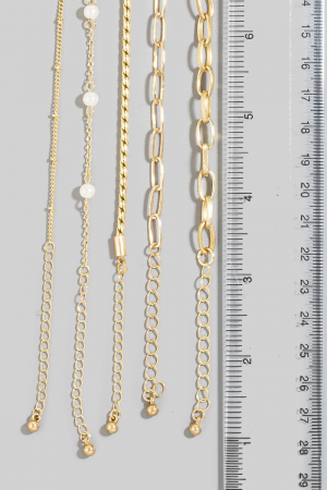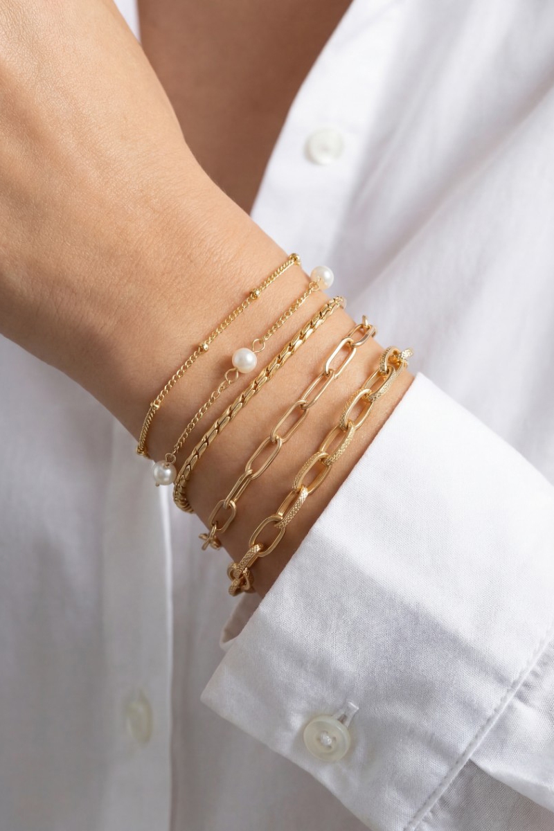 - This bracelet introduces a unique mixed metallic chains set style. Immerse yourself in the details of design, as this bracelet effortlessly becomes a conversation starter.