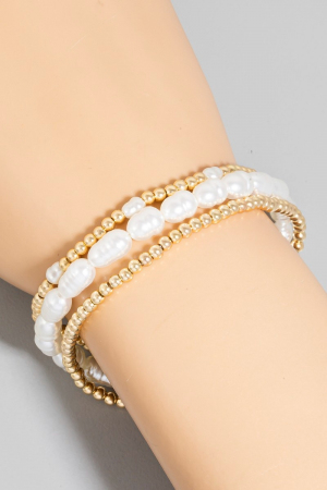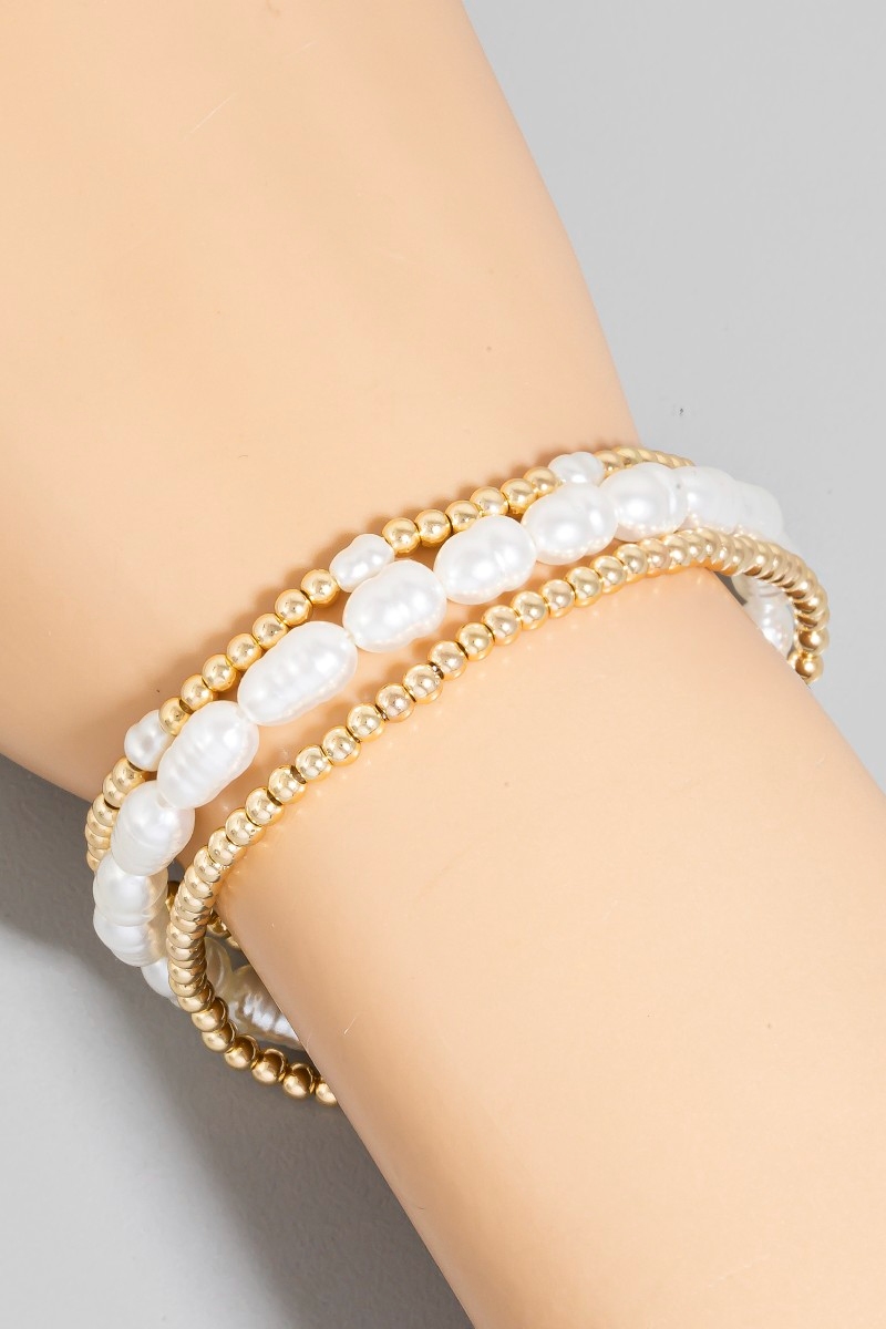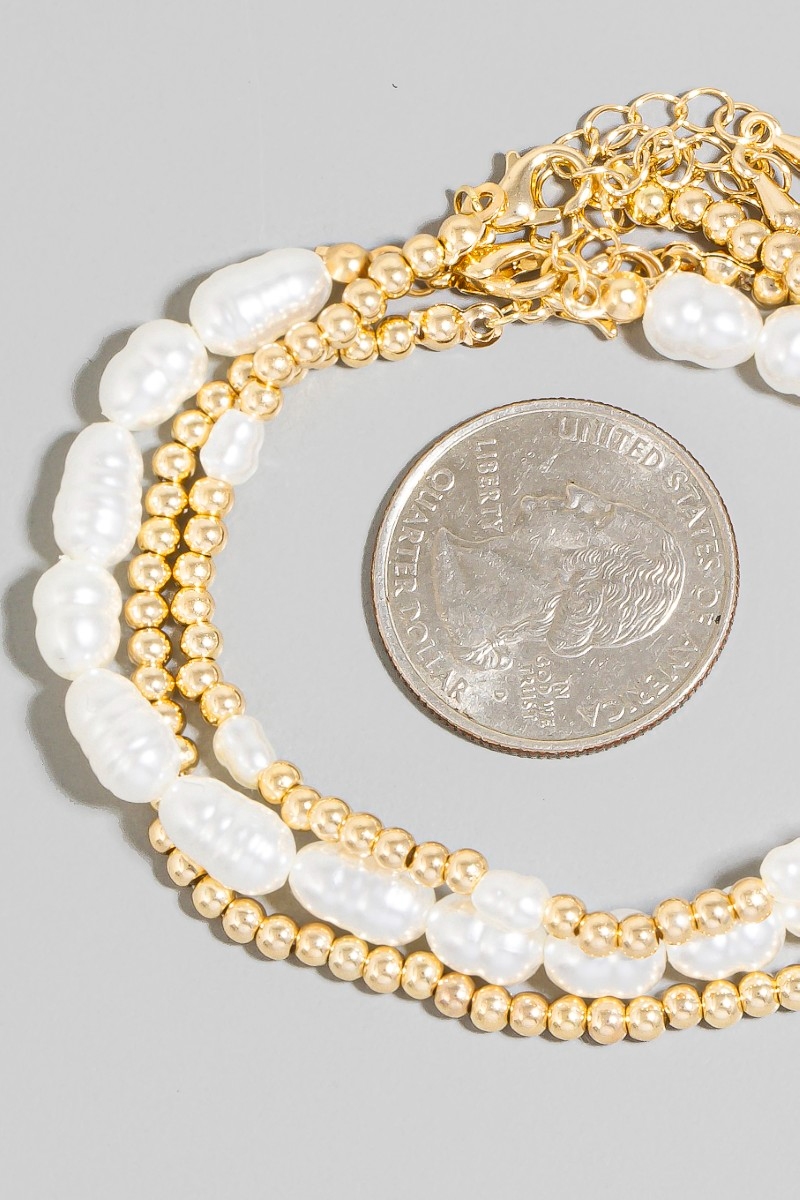 • This stackable bracelet showcases a unique pearl and mini metallic beaded bracelet set style. Redefine your look effortlessly with this standout, on-trend piece.