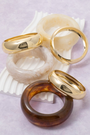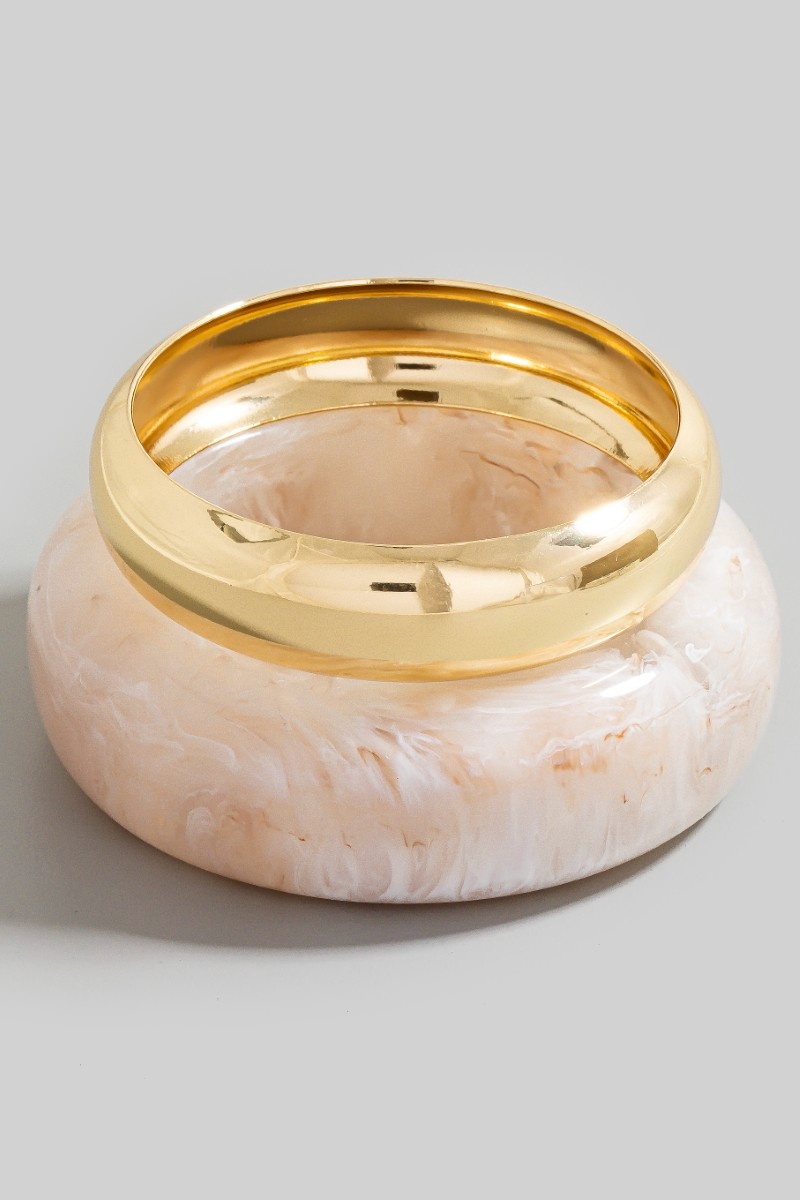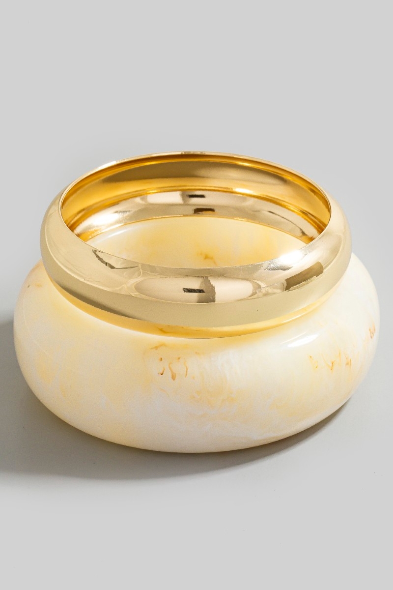 • This bangle bracelet adds a modern thick marble resin and metallic set style. Experience a subtle blend of modernity and classic charm as this bangle bracelet effortlessly adorns your ensemble.
