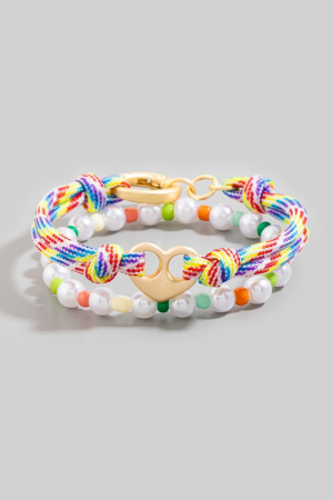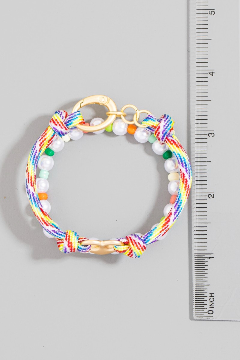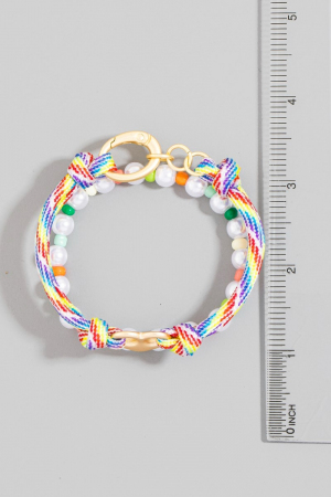 - This bracelet displays a fashionable vibrant cord and mixed beads set style. Celebrate the art of accessorizing with this piece that effortlessly encapsulates modern trends.