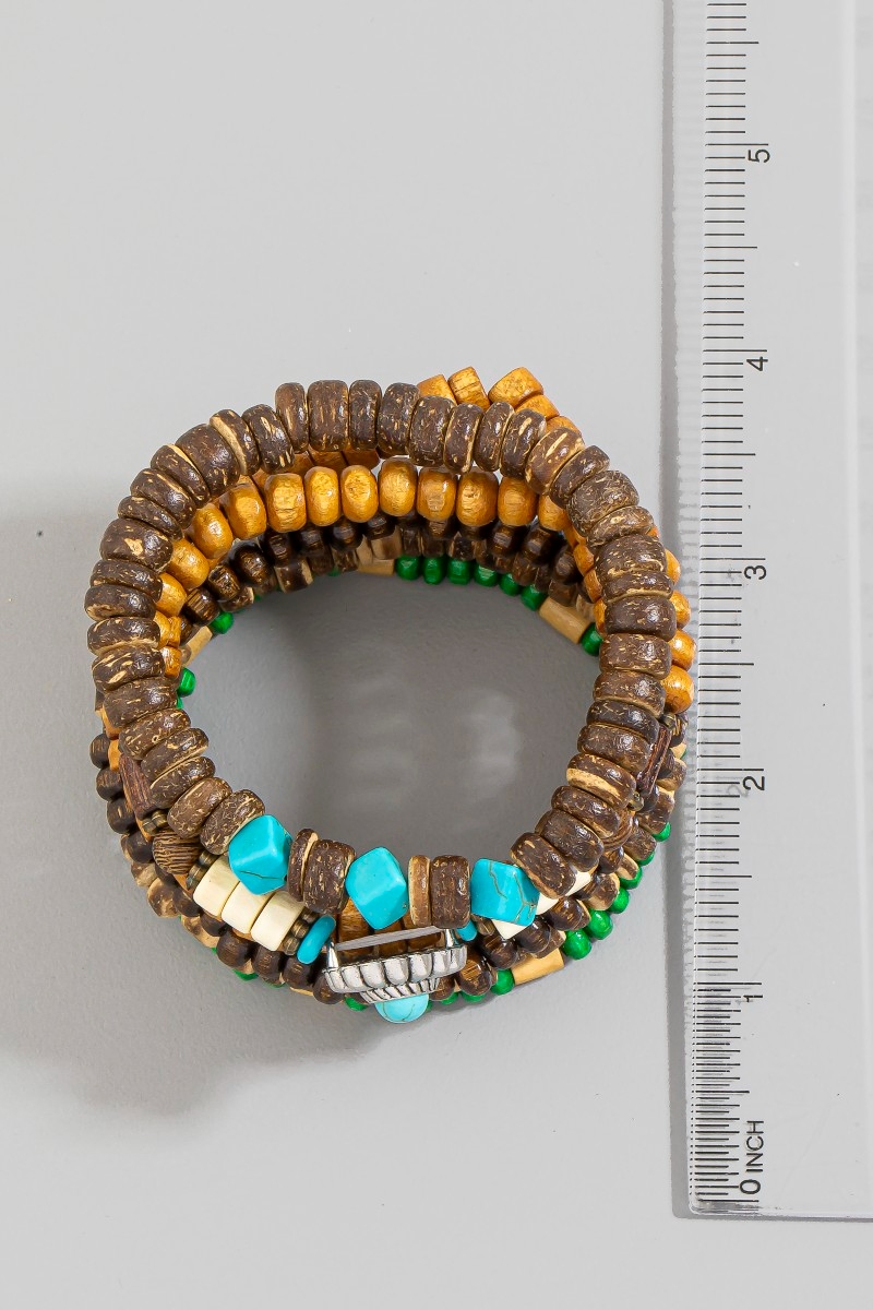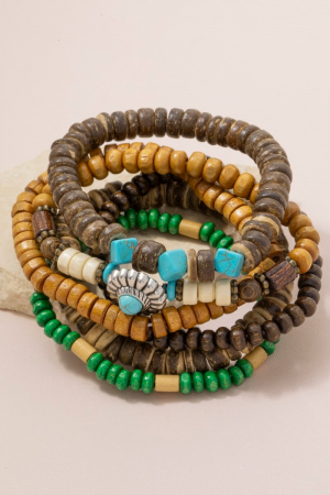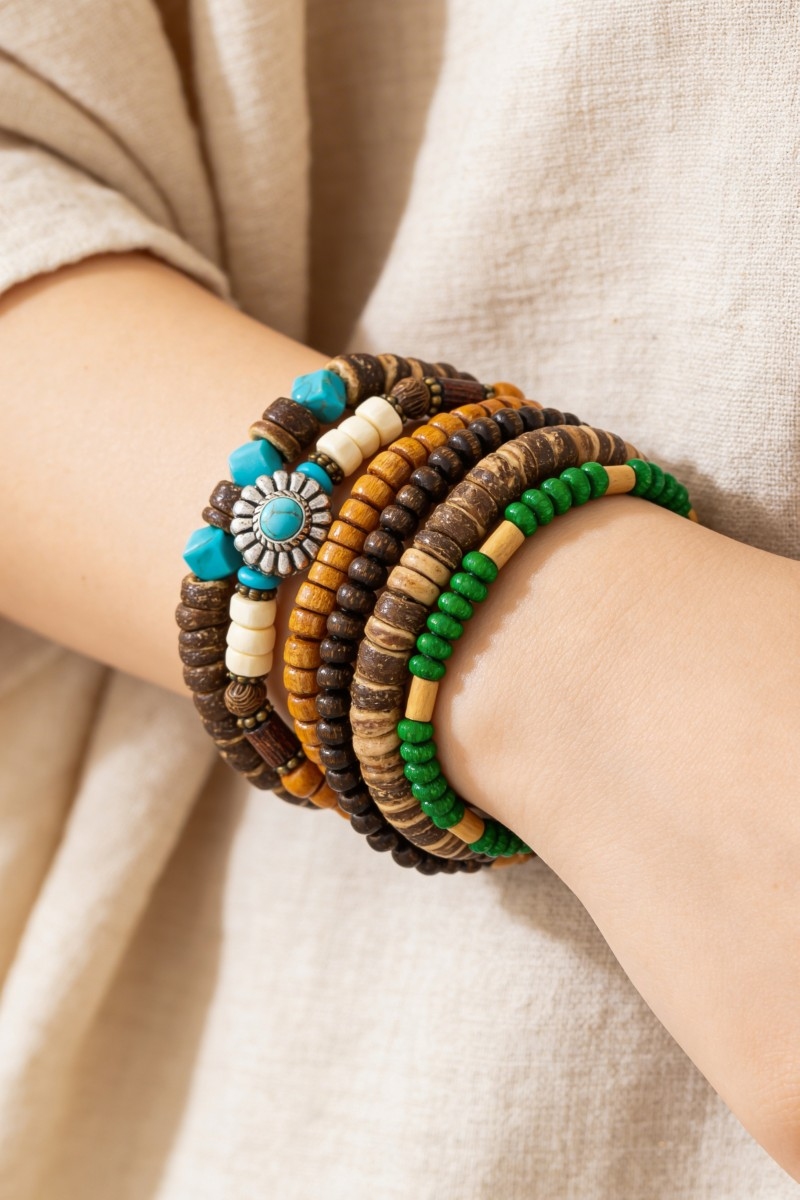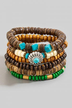 - This stackable bracelet brings a luxurious western wooden beads set style. Delight in the intricate details that make this stackable bracelet an essential element in expressing your fashion identity.
