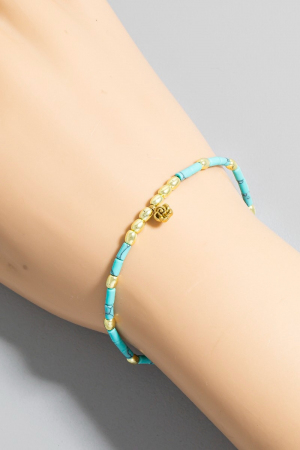 - This bracelet introduces a unique flower charm mixed stainless steel and glass beaded style. Savor the allure of detailed craftsmanship in this exquisite bracelet.