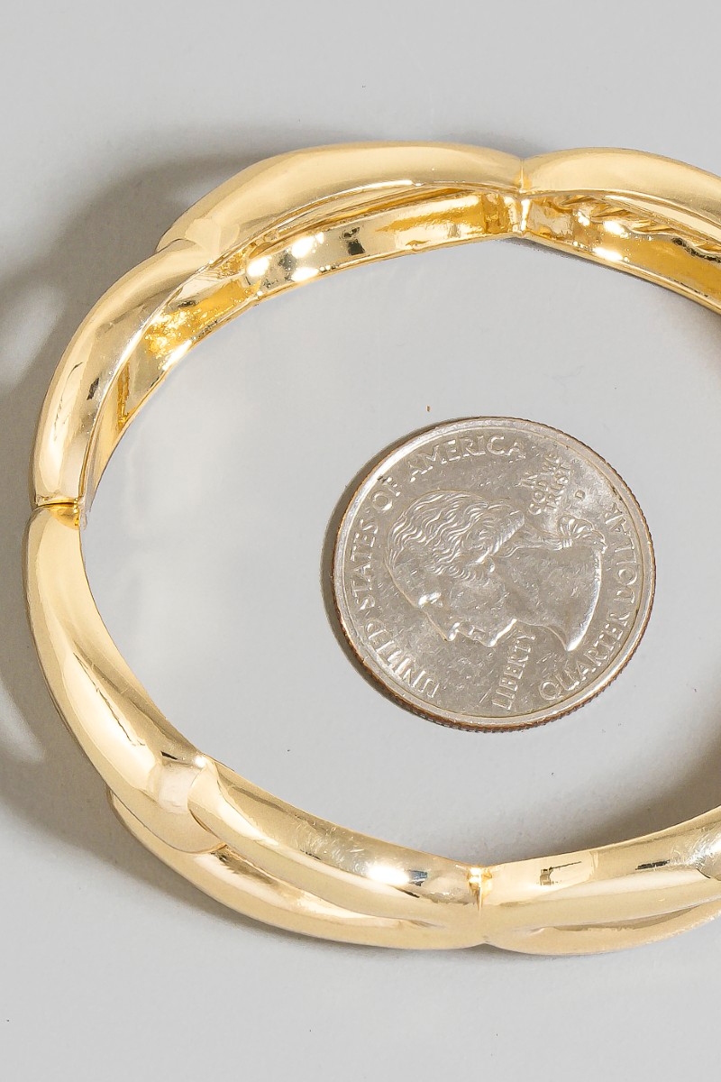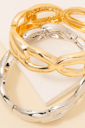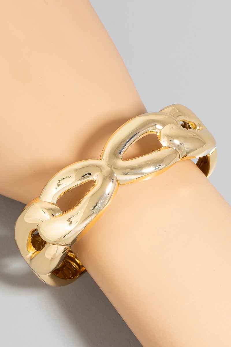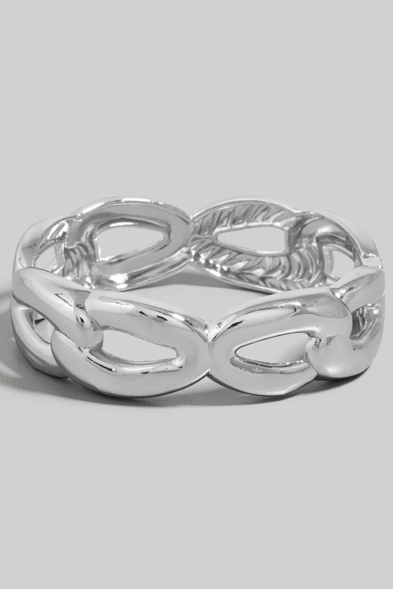 - This bangle bracelet displays a vibrant stainless steel solid chain hinge style. Witness the perfect fusion of style and functionality as this bangle bracelet effortlessly complements your lifestyle.