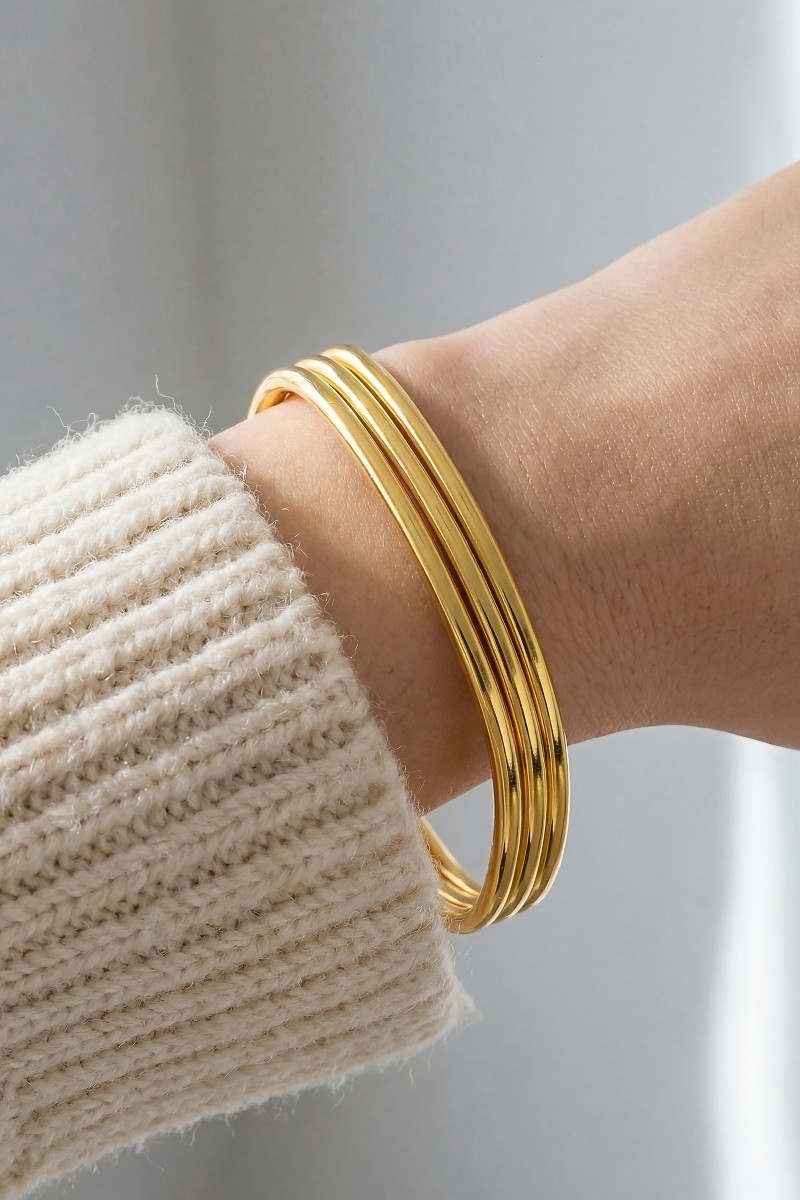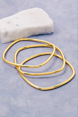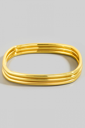 - This bangle bracelet adds a modern stainless steel three row square style. Celebrate the art of accessorizing with this piece that effortlessly encapsulates modern trends.