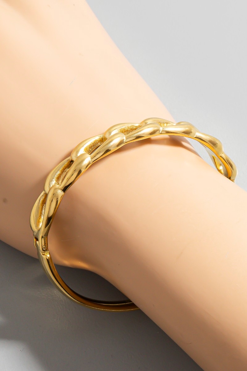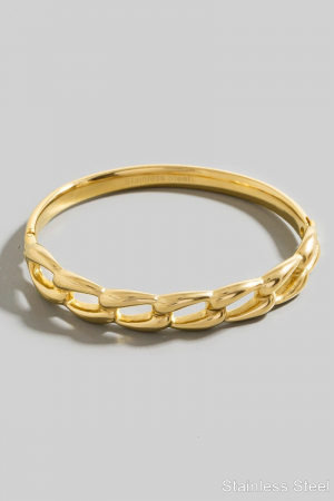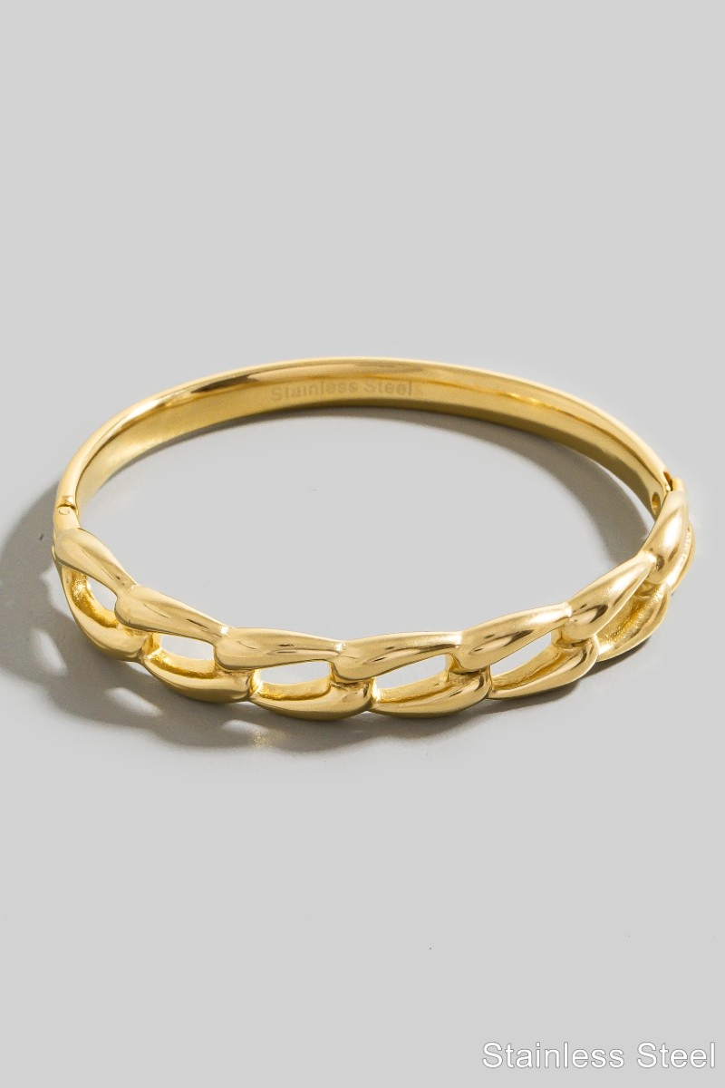 - This bangle bracelet brings a stunning stainless steel gold plated chain style. Witness the transformative power of accessories as this piece effortlessly redefines your fashion narrative.