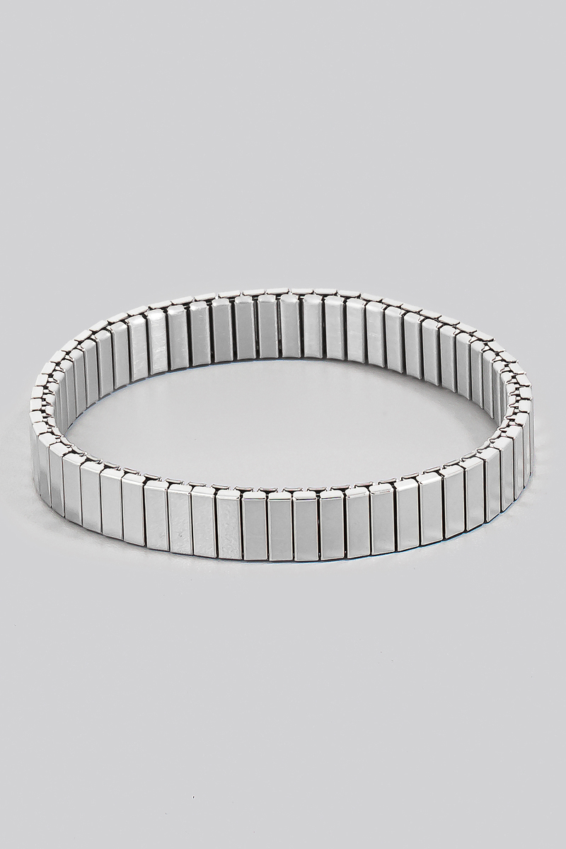 • This bracelet displays a fashionable rectangle metallic bars elastic style. Savor the allure of detailed craftsmanship in this exquisite bracelet.