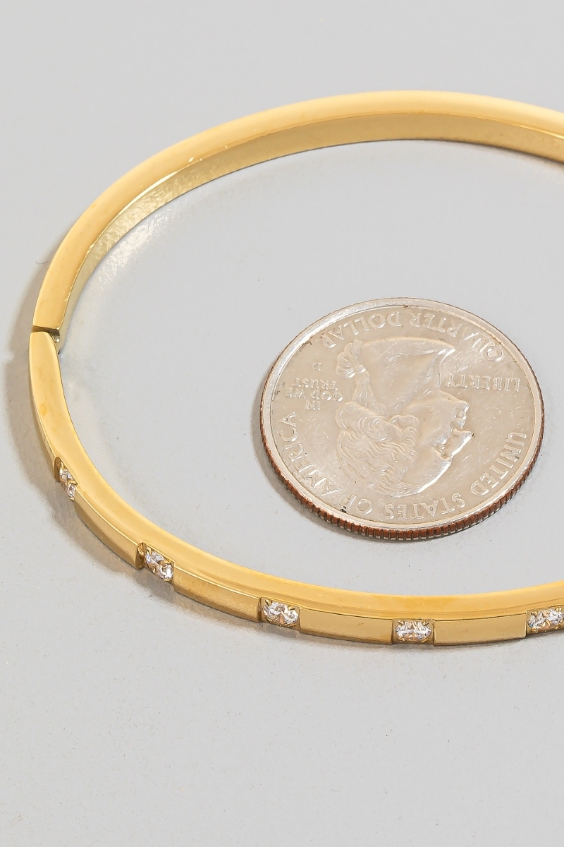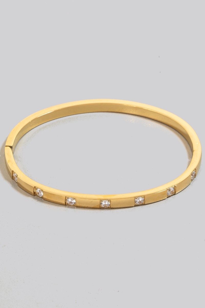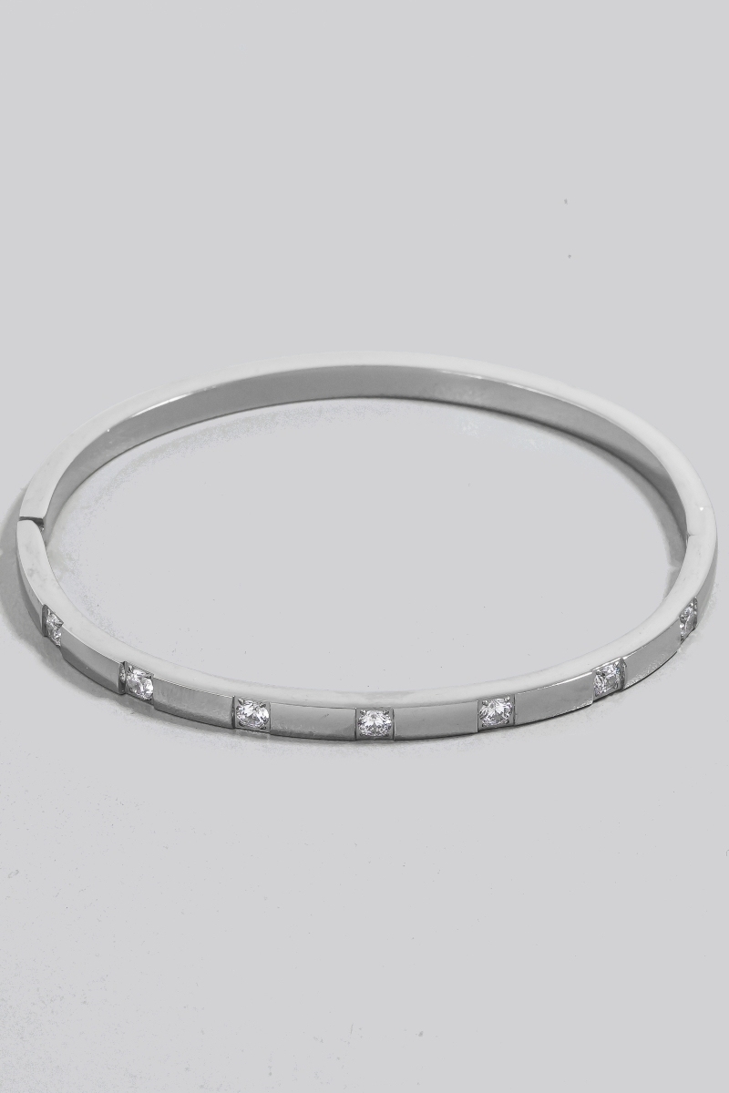- This bangle bracelet brings a stunning stainless steel square studded hinge style. Redefine your look effortlessly with this standout, on-trend piece.