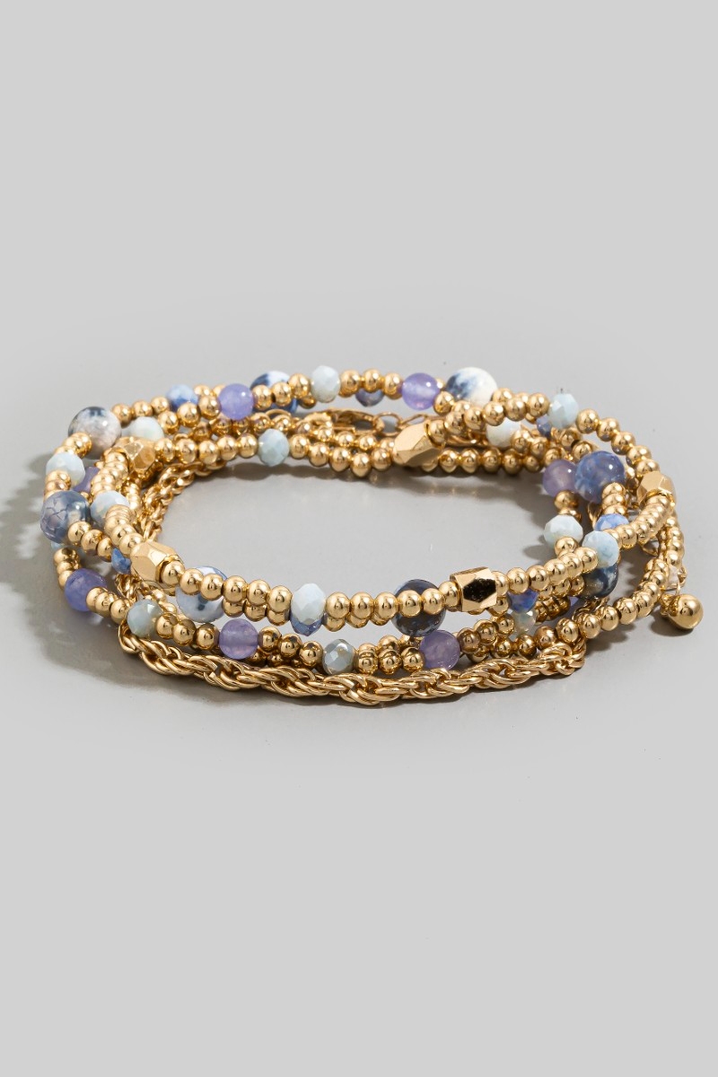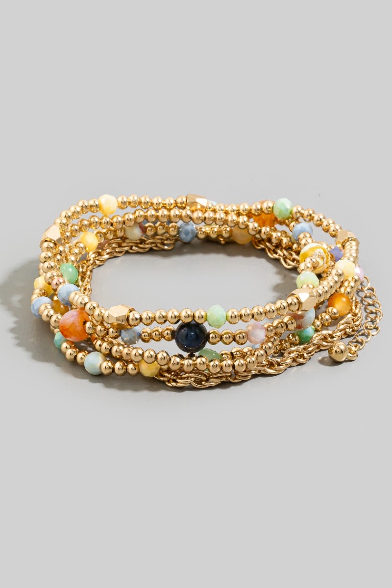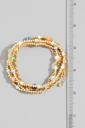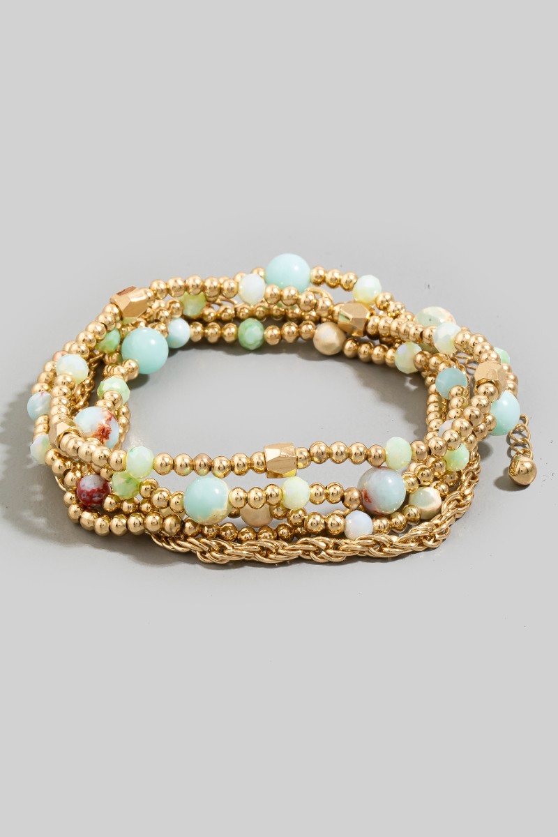 - This bracelet displays a fashionable stone and metallic beaded set style. Savor the craftsmanship that goes beyond the ordinary, as this bracelet effortlessly captivates attention.