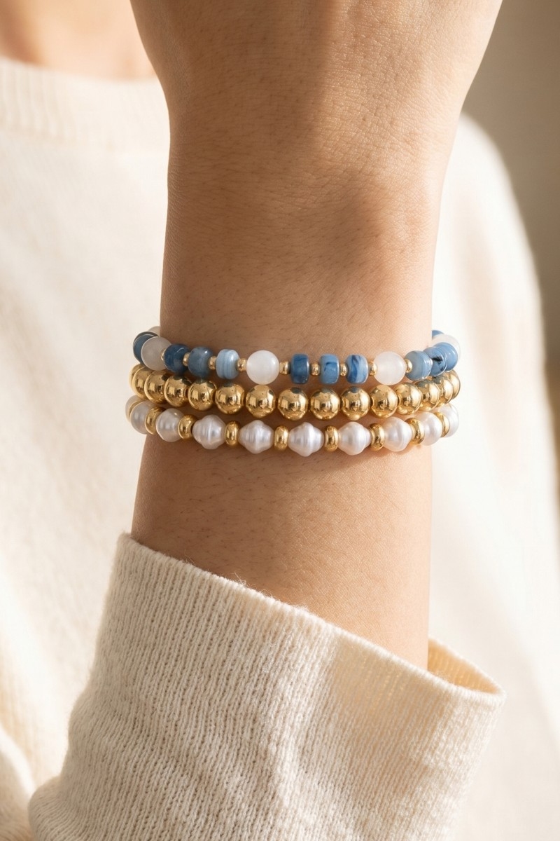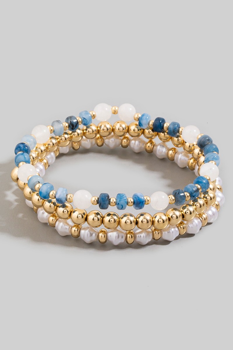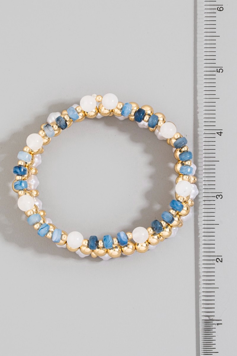 - This stretch bracelet features a fashionable stone, pearl & gold ball beaded set style. Savor the craftsmanship that goes beyond the ordinary, as this stretch bracelet effortlessly captivates attention.