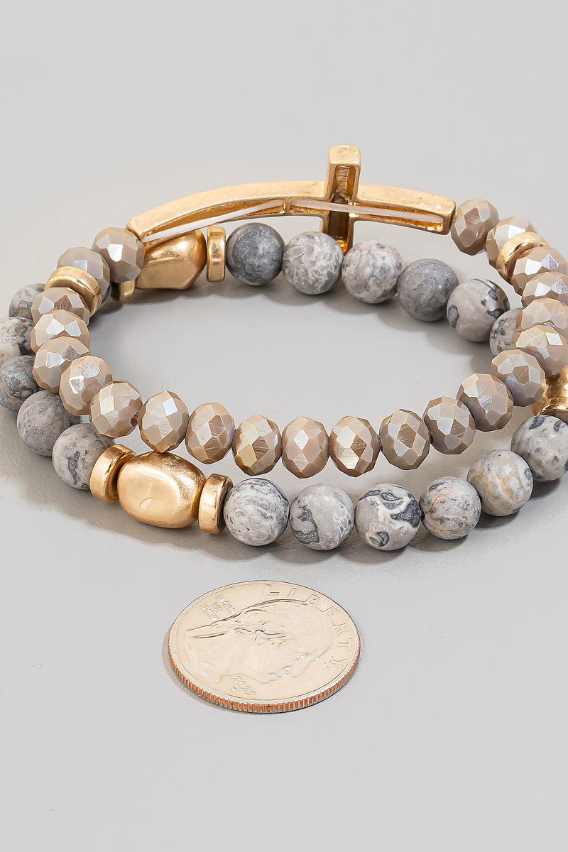 • This bracelet brings a stunning cross charm stone beaded set style. Indulge in the artistry of accessorizing with this unique piece.