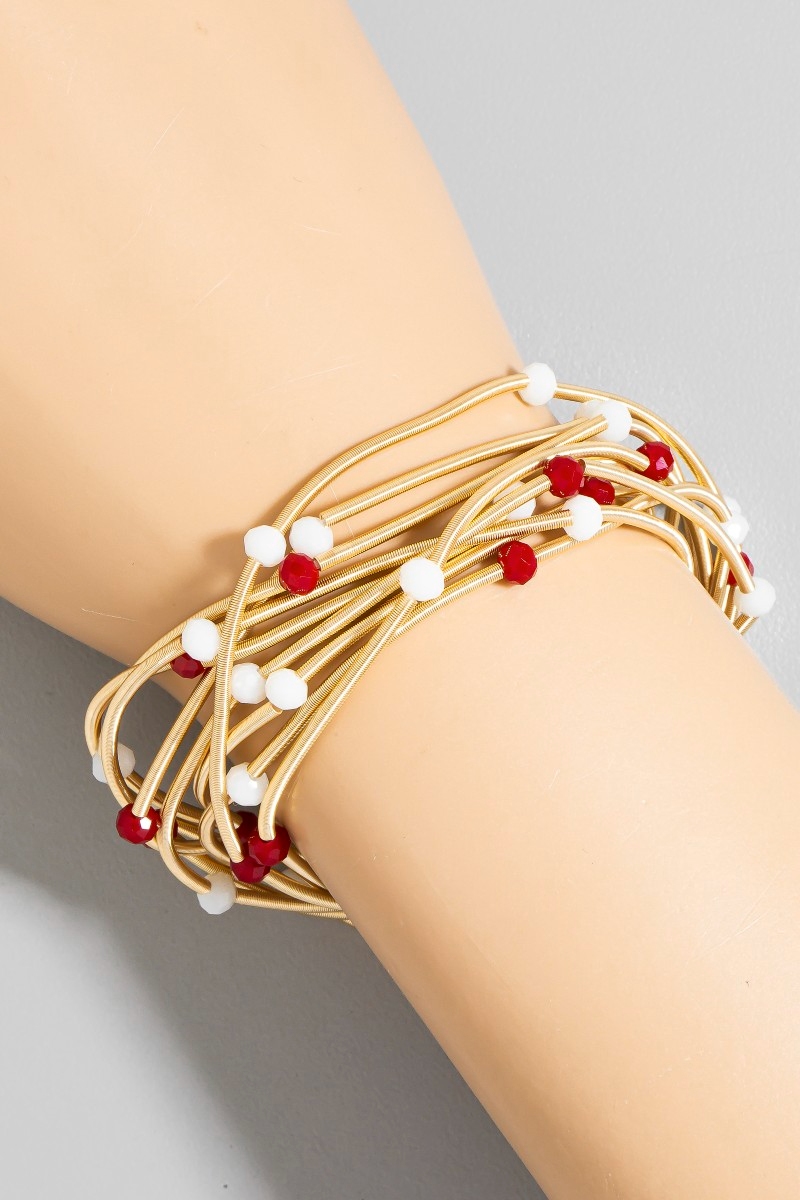 - This bracelet brings a luxurious game day beads metallic elastic set style. Unveil modern elegance with this subtly intricate bracelet.