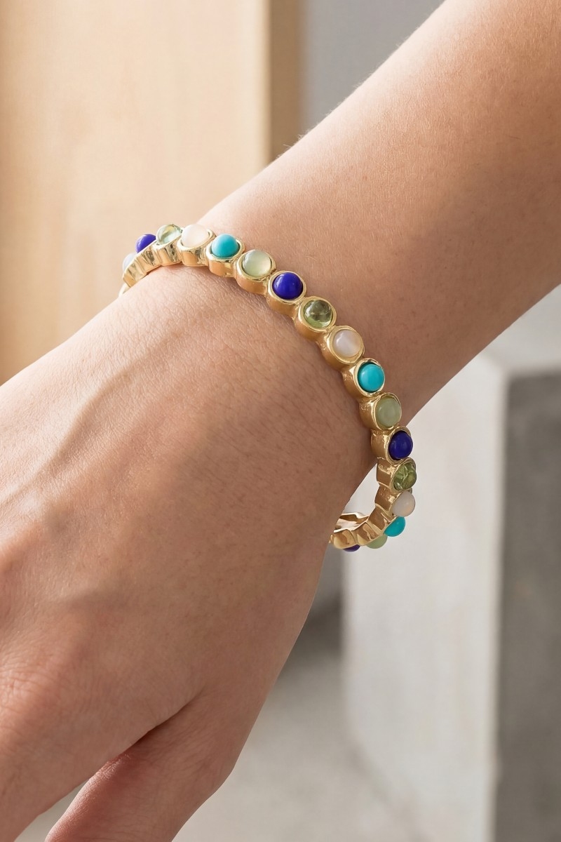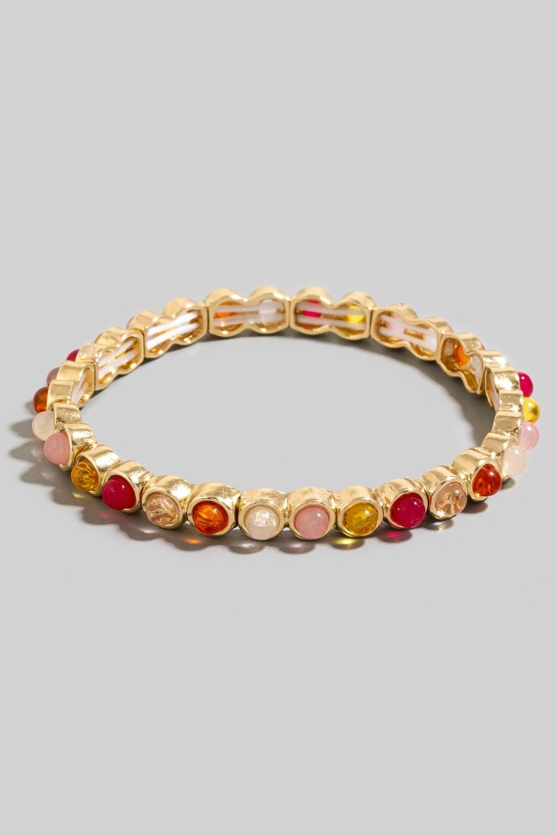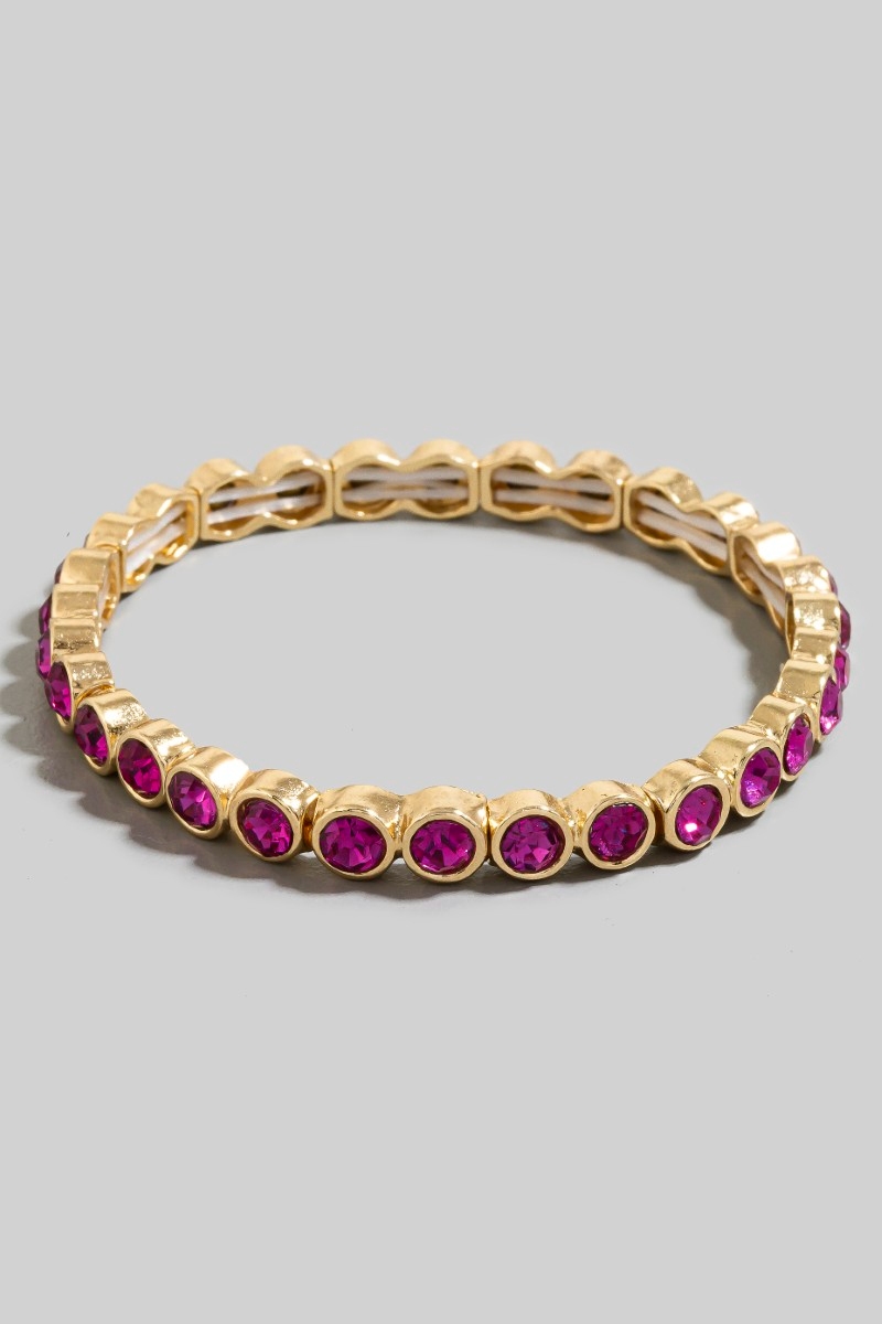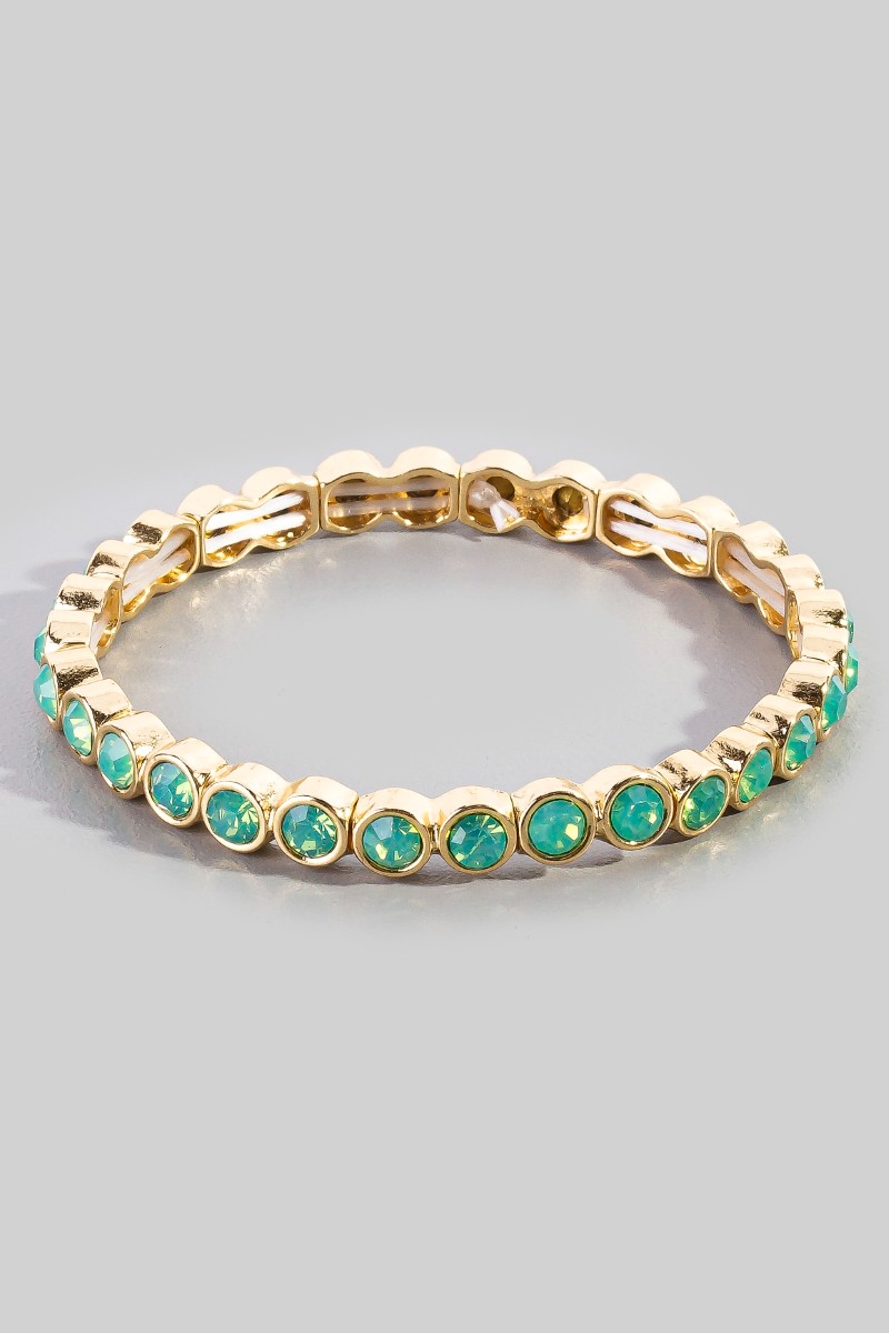 • This chain bracelet showcases a unique glass circle gem tennis style. Discover the perfect balance of functionality and fashion.
