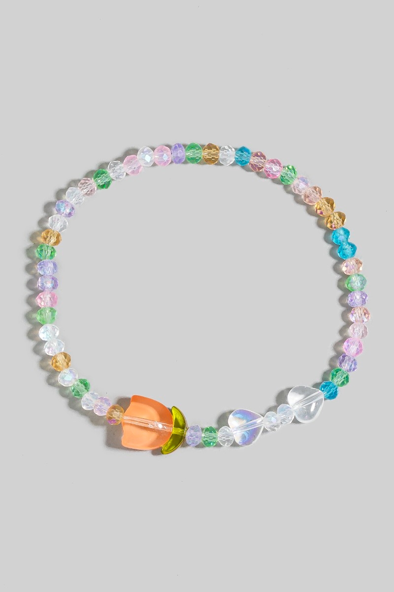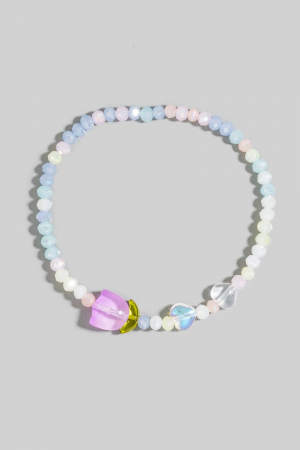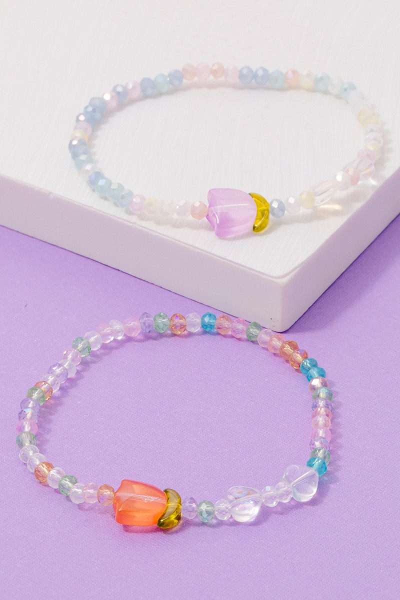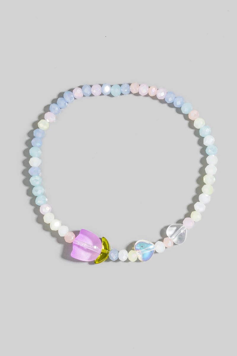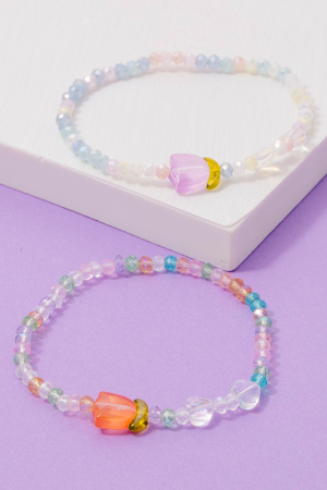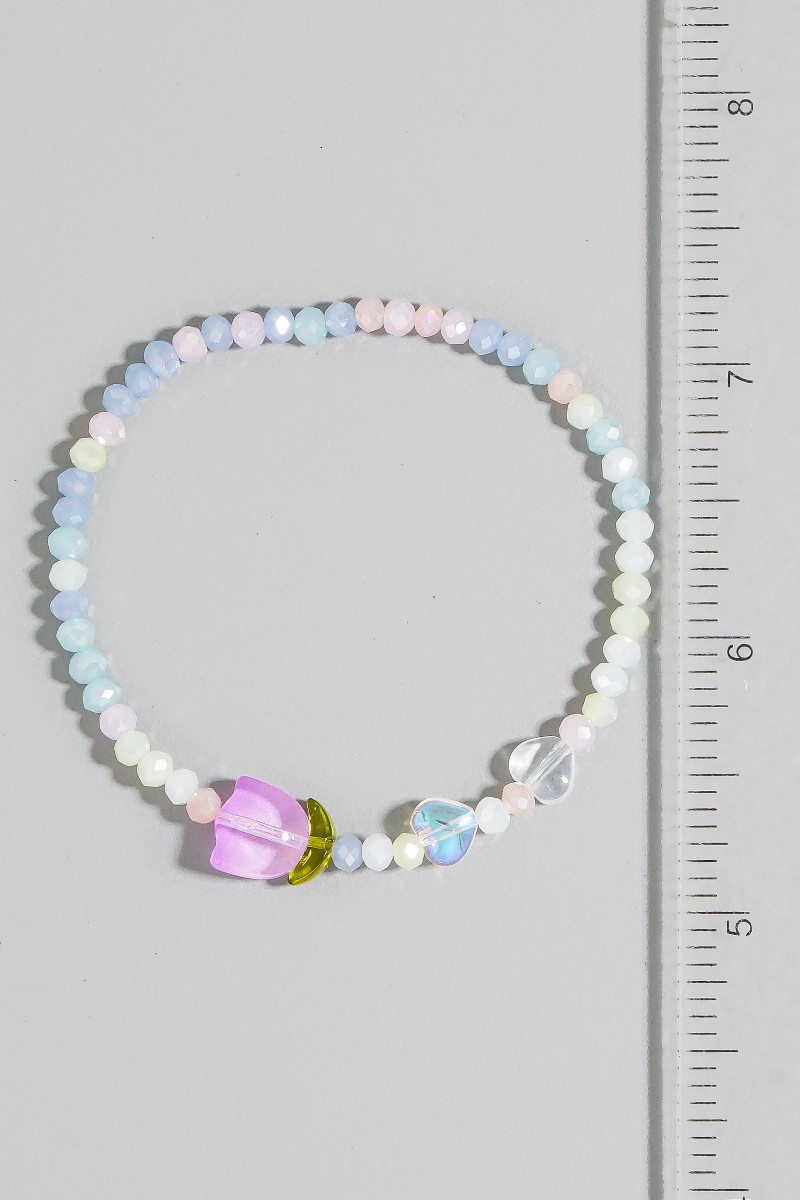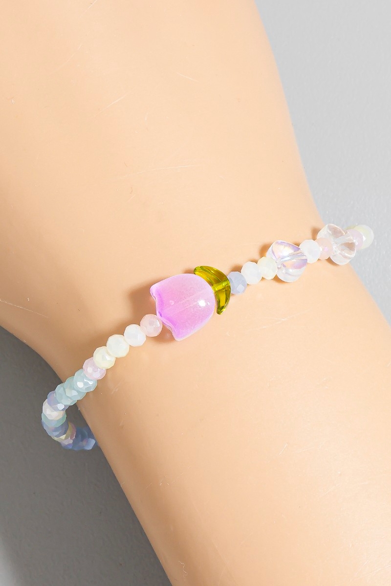 - This bracelet features a fashionable tulip charm glass beaded style. Experience refined sophistication with this understated yet stylish piece.