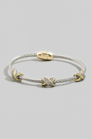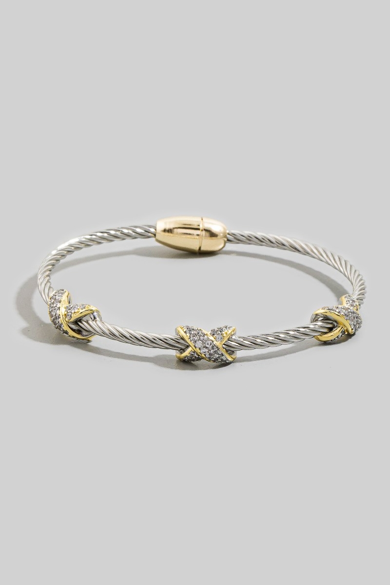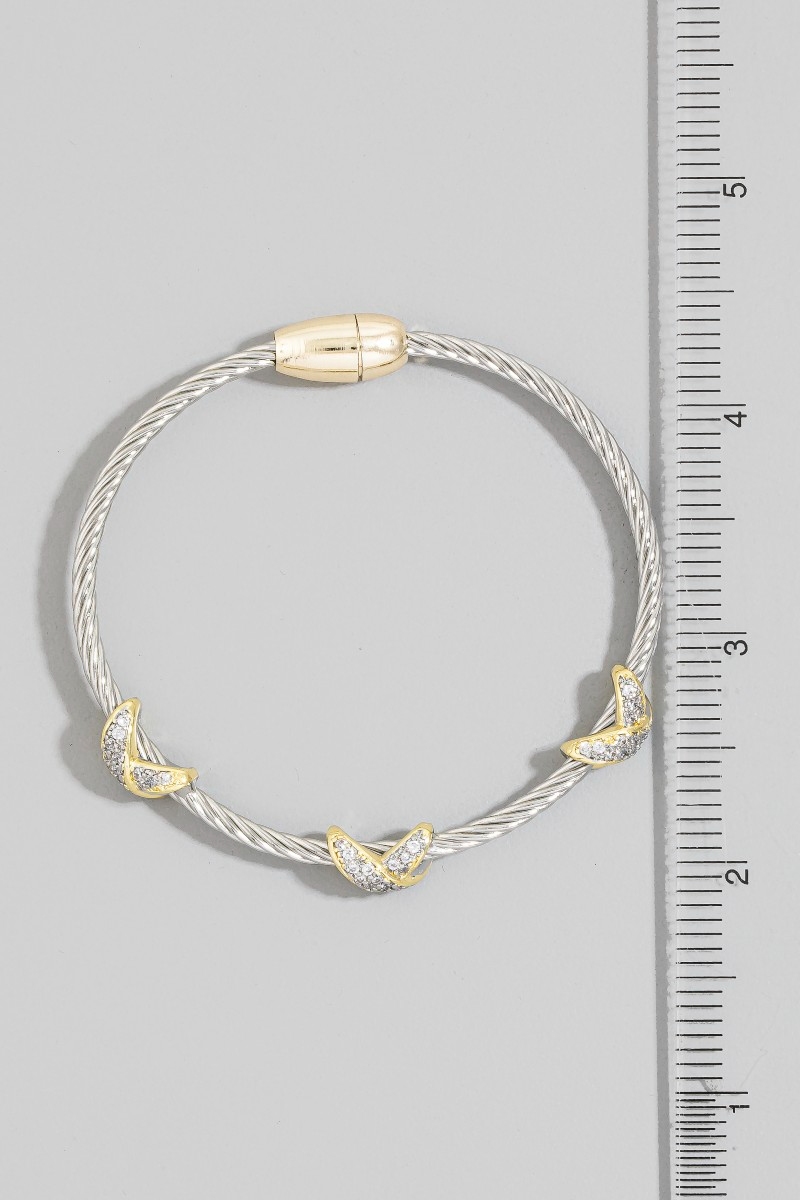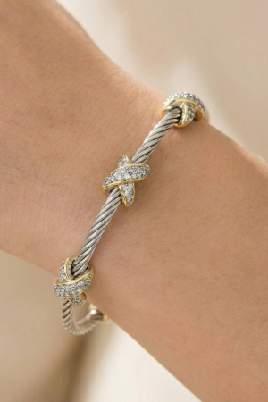 - This bangle bracelet introduces a stunning two-tone cable wire cubic zirconia x-station style. Explore a refined sense of style with this bangle bracelet, seamlessly elevating the chic factor of your look.