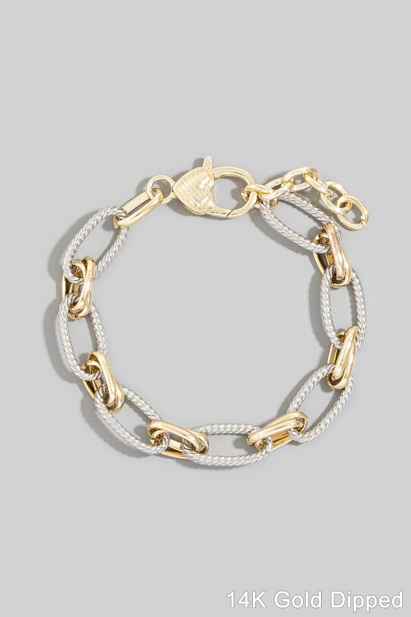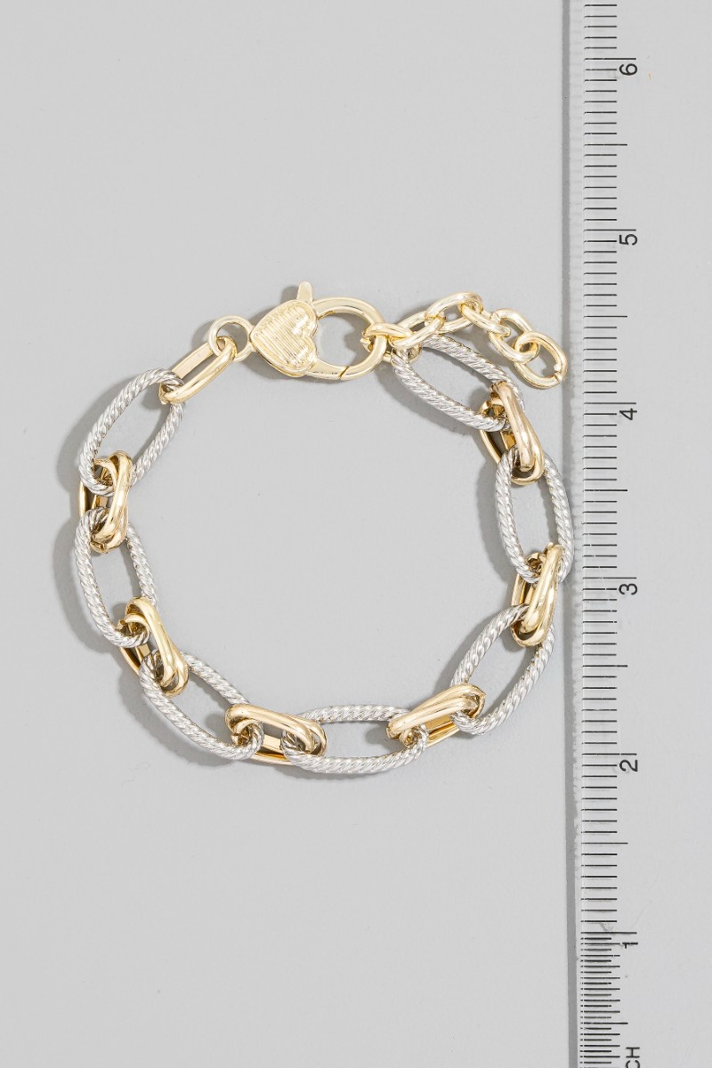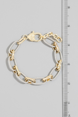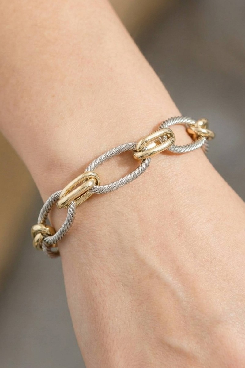 • This bracelet showcases a unique two-tone twisted rope oval link style. Explore a blend of classic charm and contemporary flair.