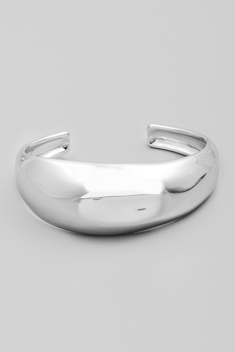 • This cuff bracelet showcases a unique wide rounded metallic style. Explore a blend of classic charm and contemporary flair.