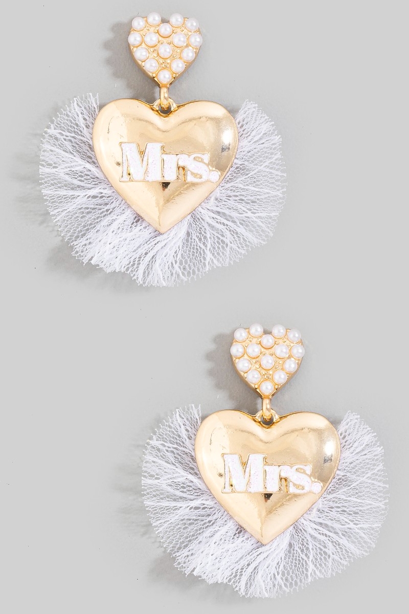 - This pair of dangle earrings introduces a stunning enamel mrs pearl and metallic heart stud style. Savor the allure of detailed craftsmanship in this exquisite pair of dangle earrings.