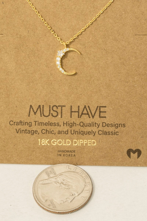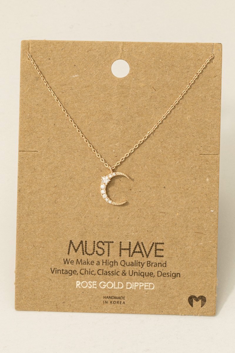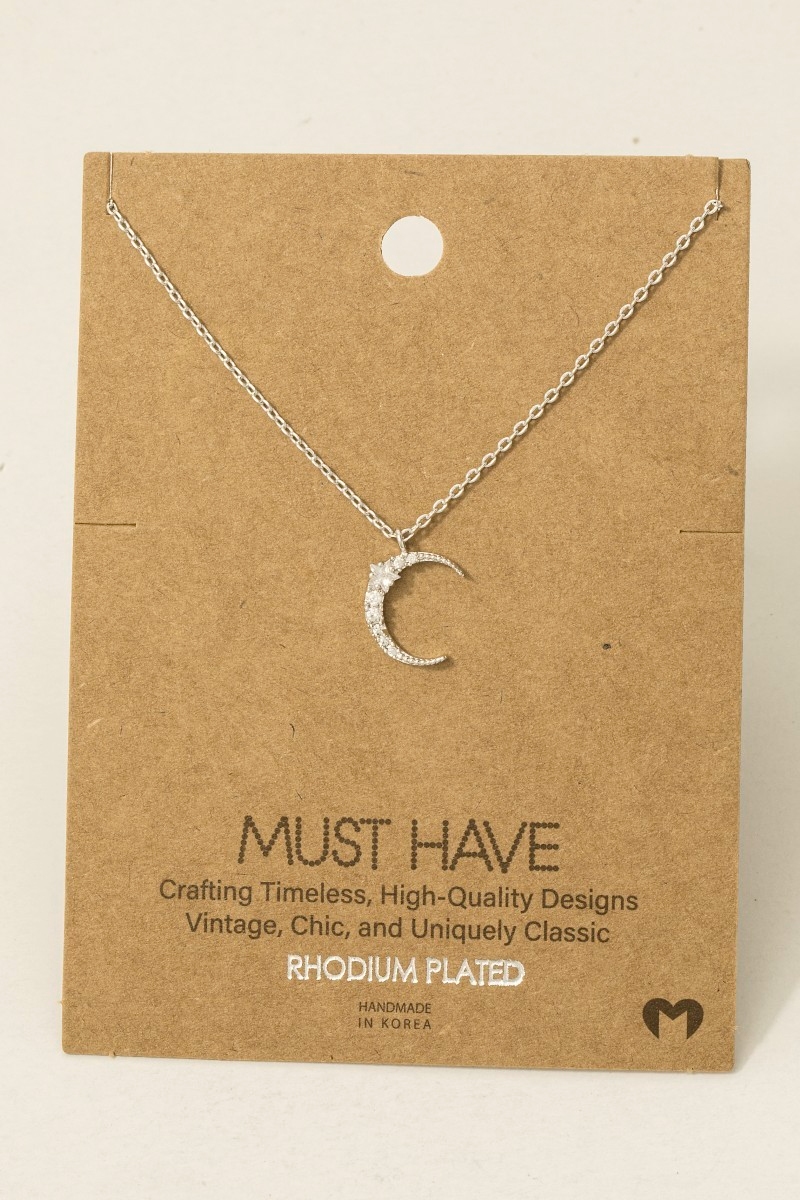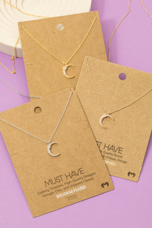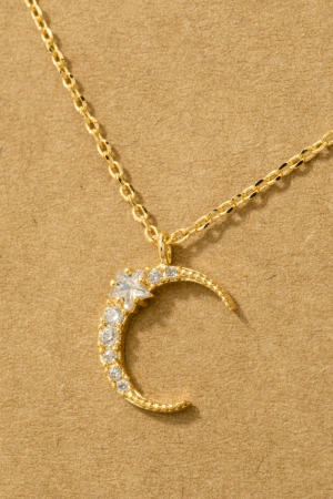 - This trending necklace brings a luxurious pave crescent moon pendant necklace style. Step into a world of refined taste as this trending necklace effortlessly refines the details of your outfit.