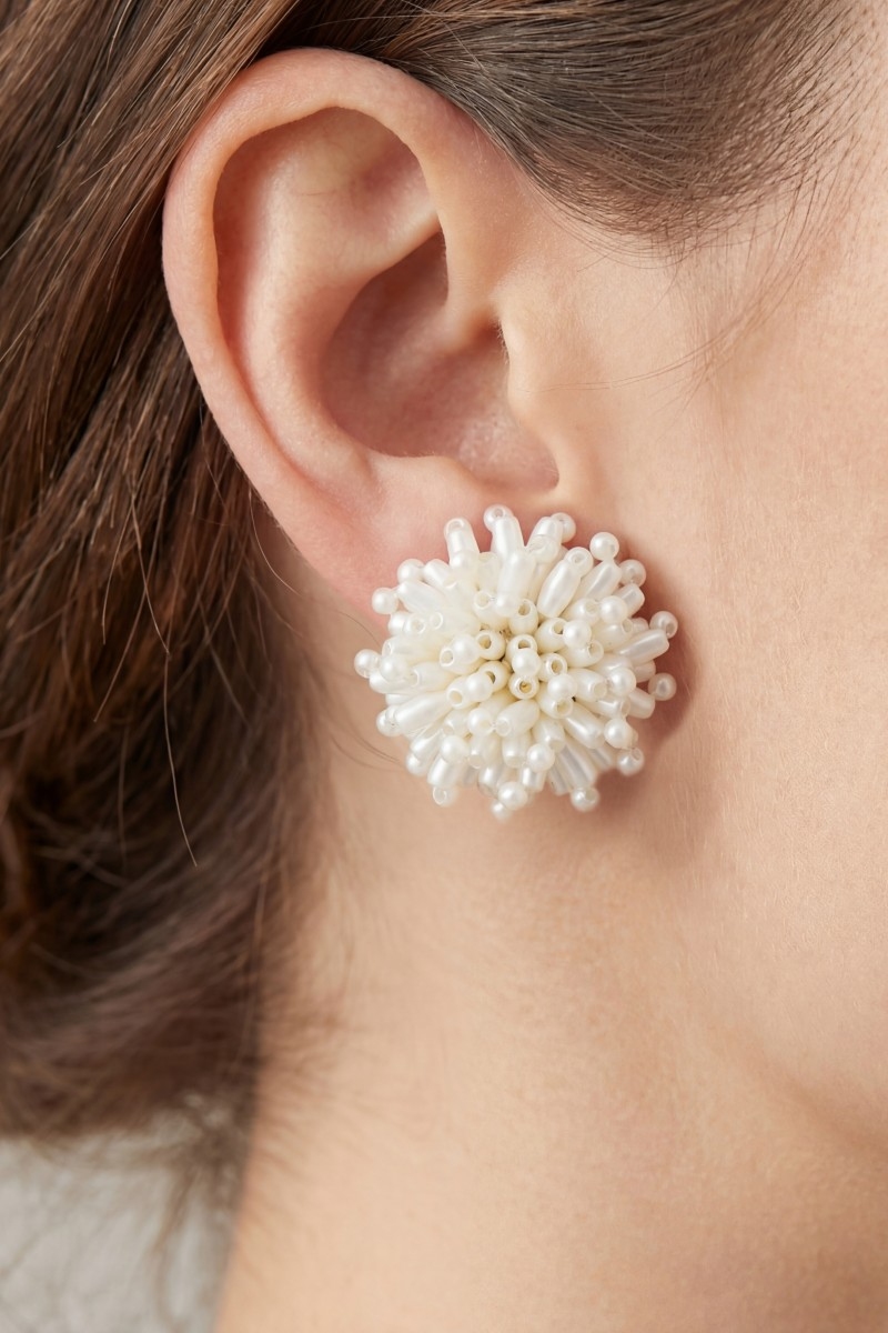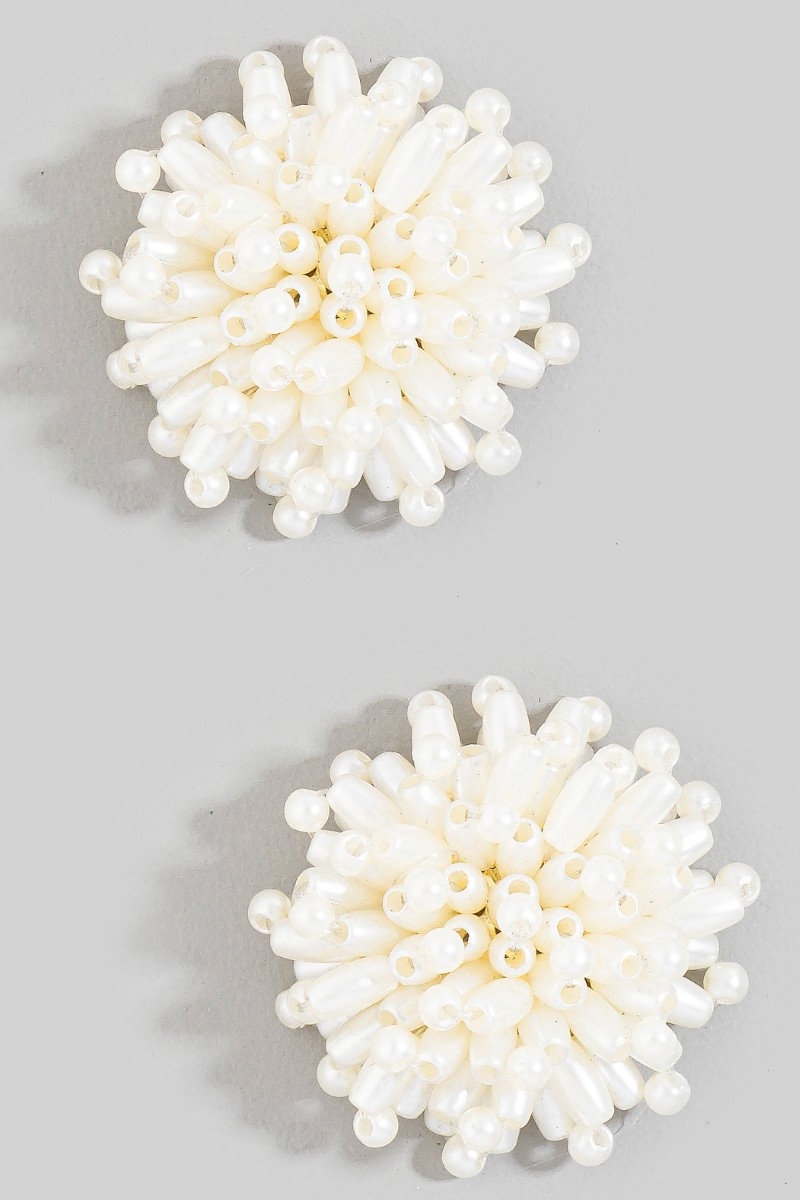 • This pair of stud earrings adds a modern pearl tube beaded cluster style. Witness the perfect fusion of style and functionality as this pair of stud earrings effortlessly complements your lifestyle.
