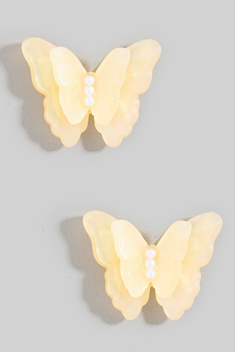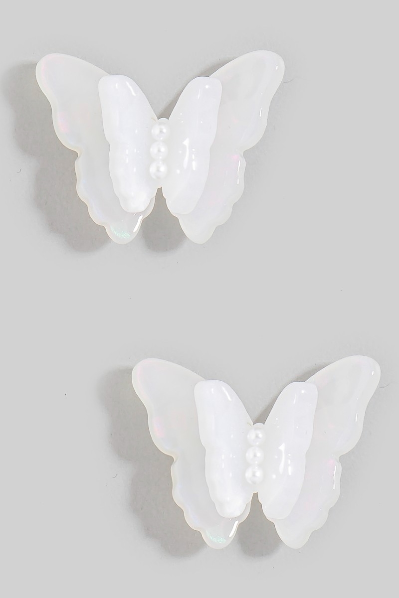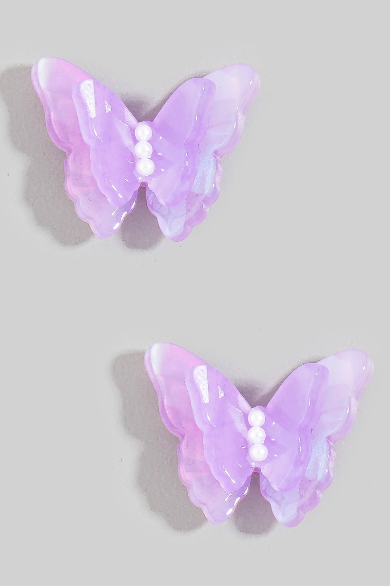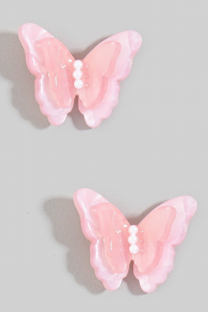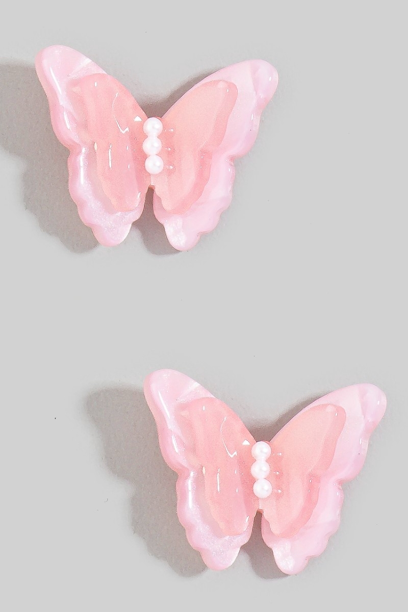 - This pair of stud earrings displays a vibrant acetate butterfly style. Embark on a journey of sartorial refinement as this pair of stud earrings effortlessly complements your fashion sense.